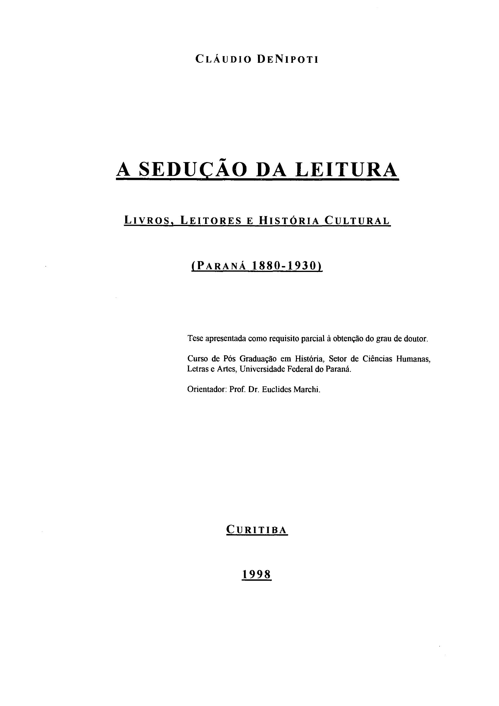 A Sedução da Leitura: Livros, Leitores e História Cultural (Paraná, 1880-1930)