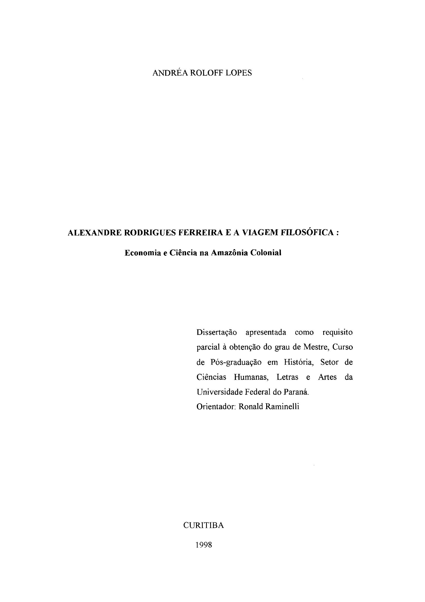 Alexandre Rodrigues Ferreira e a Viagem Filosófica: Economia e Ciência na Amazônia Colonial