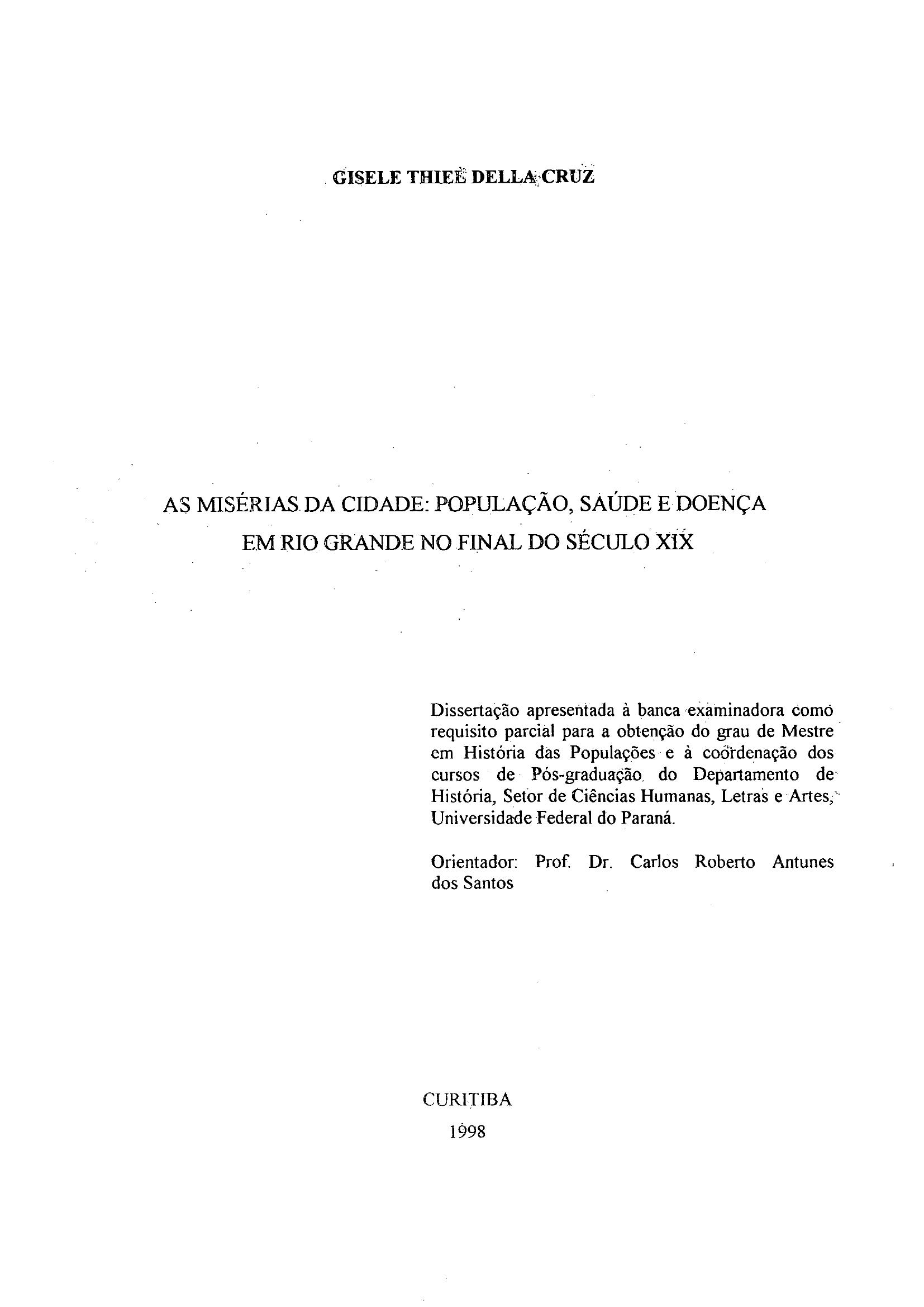 As Misérias da Cidade: População, Saúde e Doença em Rio Grande no Final do Século XIX