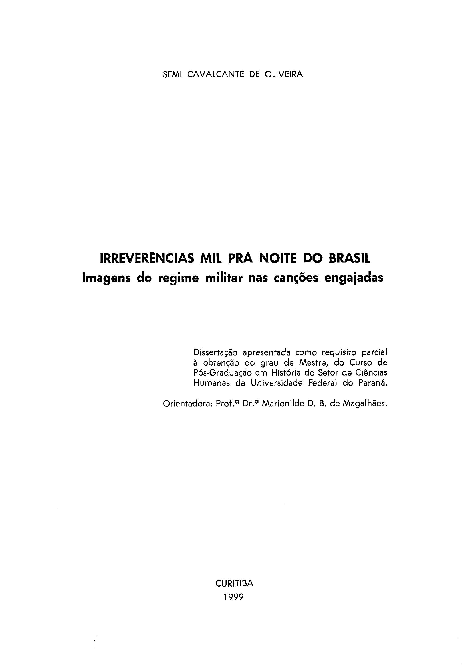 Irreverências Mil Prá Noite do Brasil: Imagens do Regime Militar nas Canções Engajadas