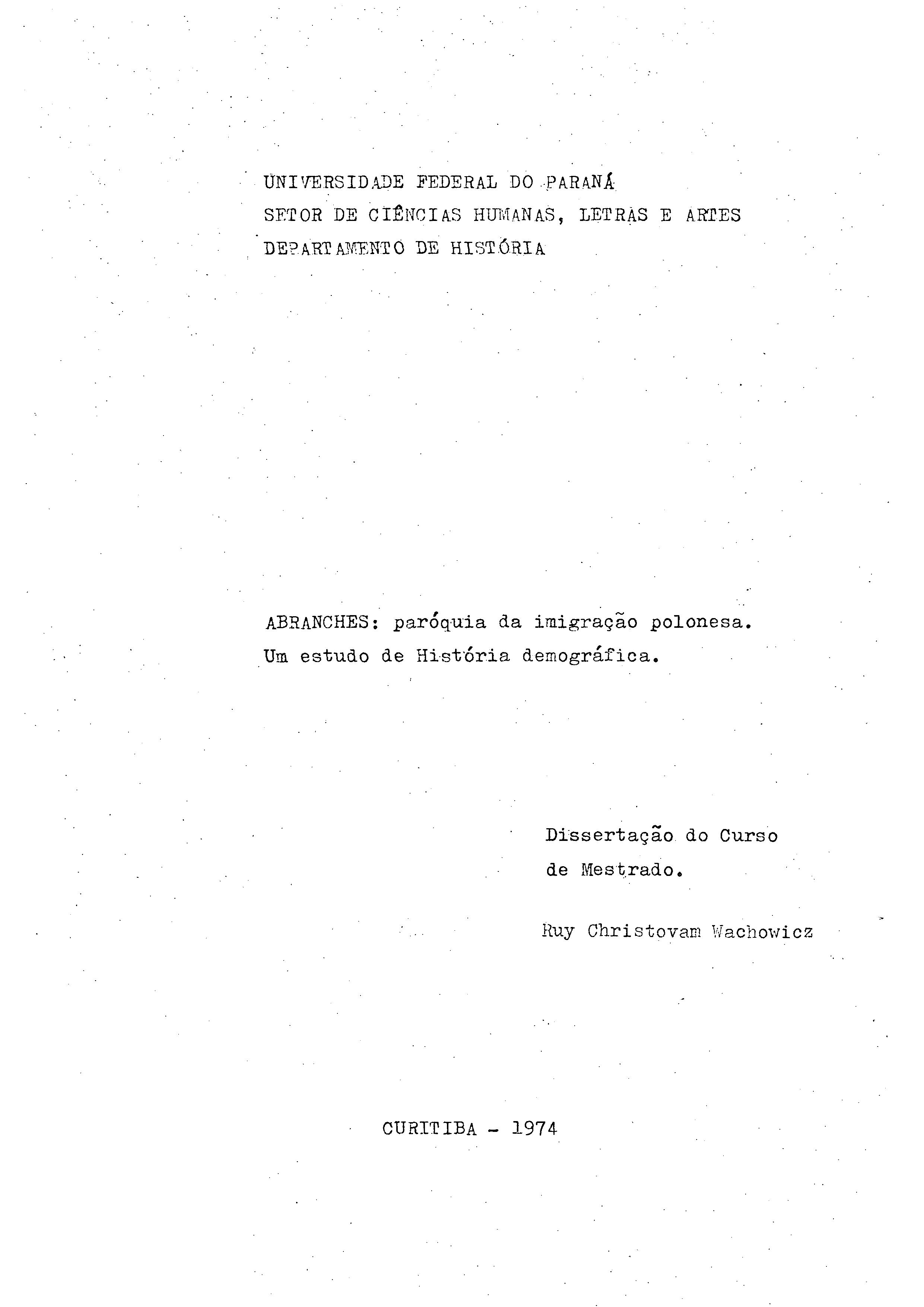 Abranches: Paróquia de Imigração Polonesa. Um Estudo de História Demográfica