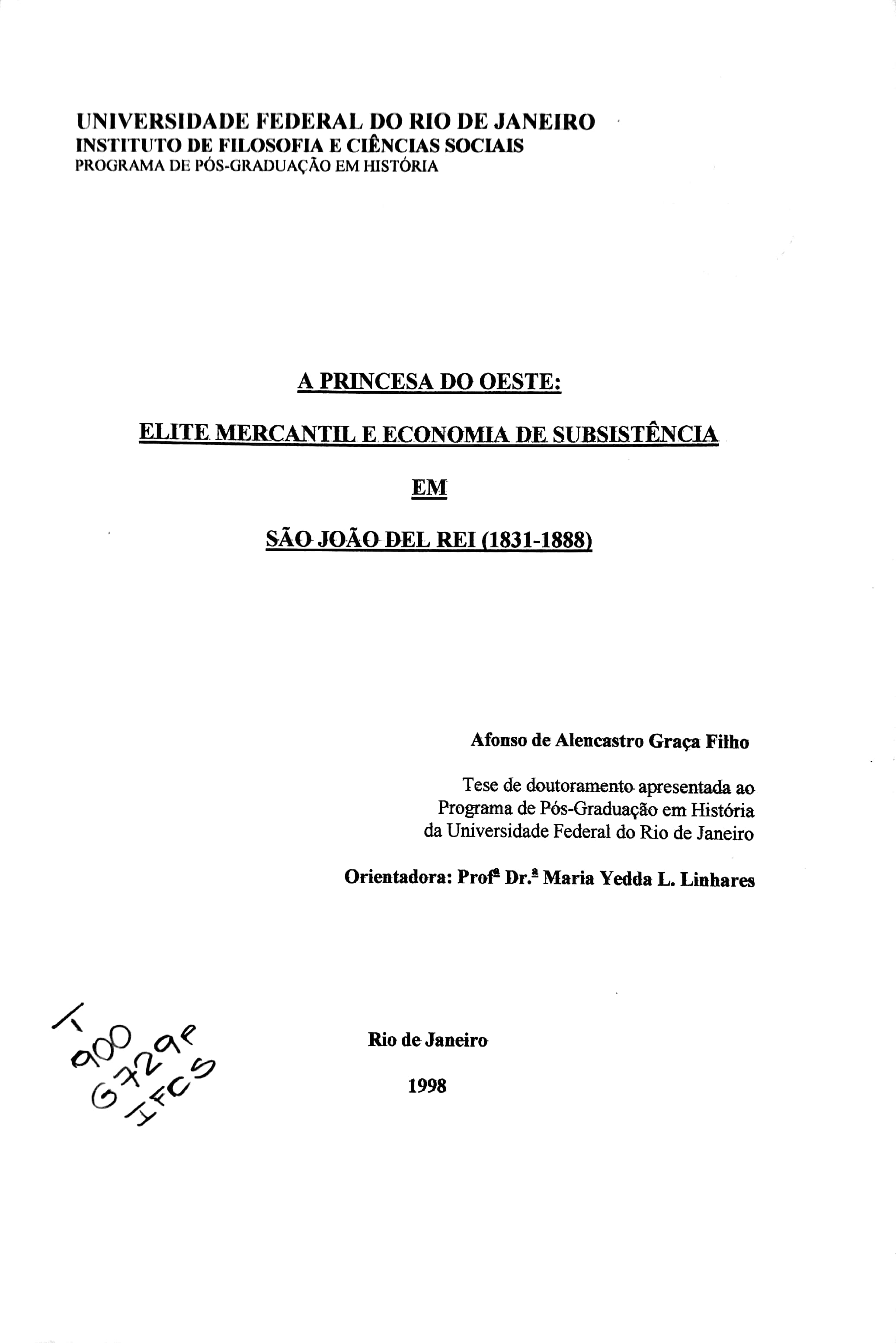 A Princesa do Oeste: Elite Mercantil e Economia de Subsistência em São João del Rei (1831-1888)