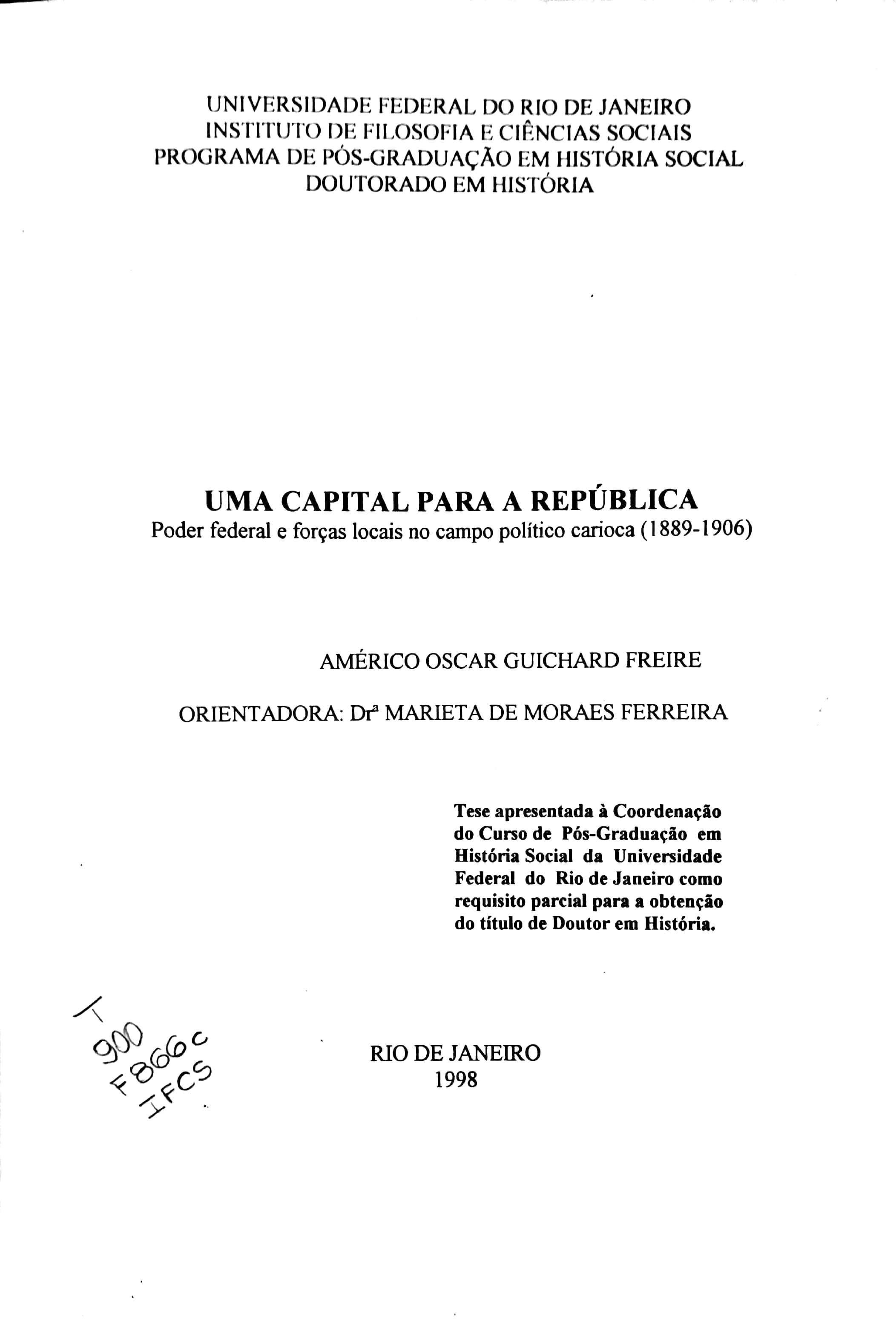 Uma Capital para a República: Poder Federal e Forças Locais no Campo Político Carioca (1889-1906)