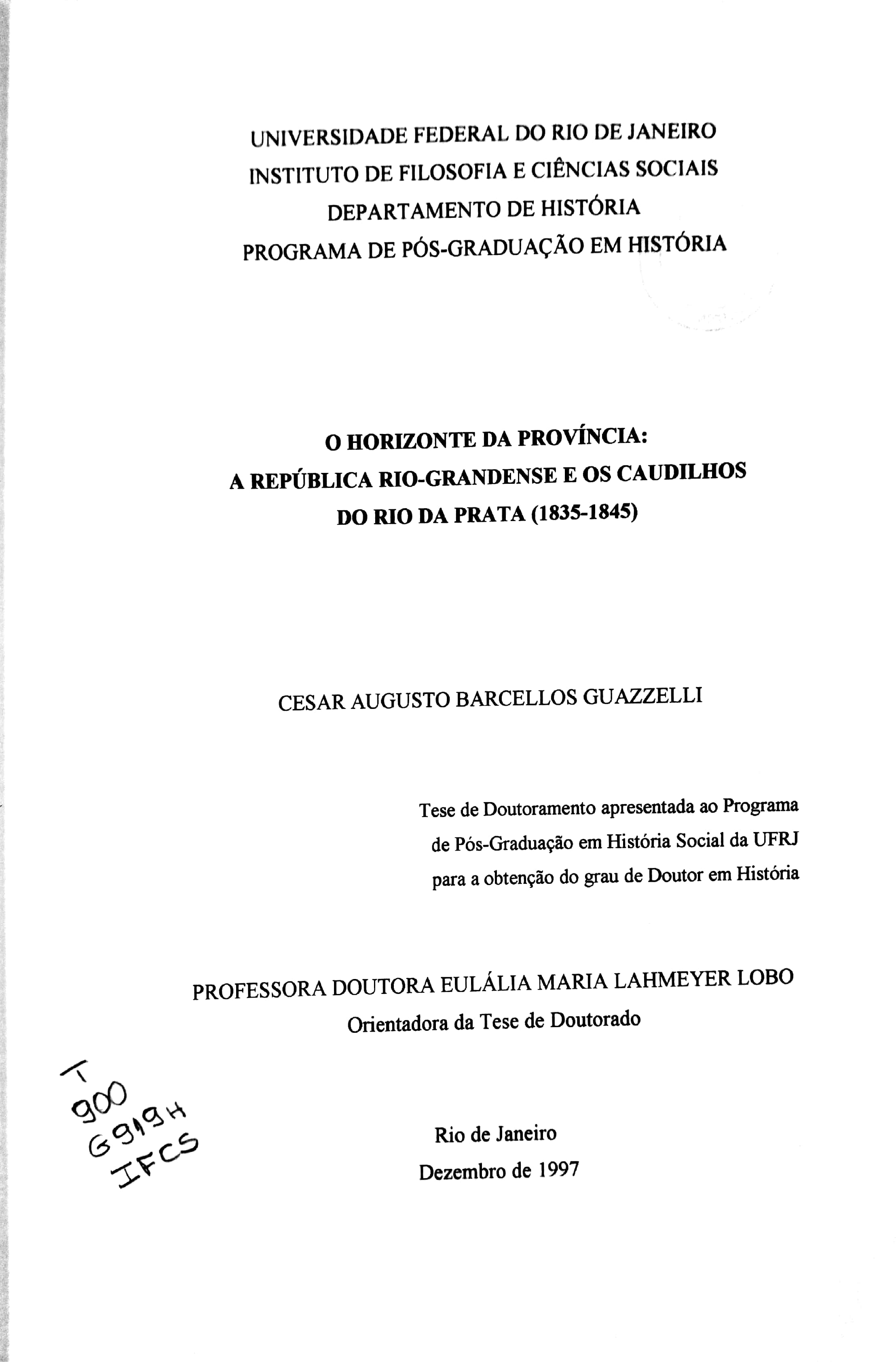 Cesar Augusto Barcellos Guazzelli (Orientador: Eulália Maria Lahmeyer Lobo)