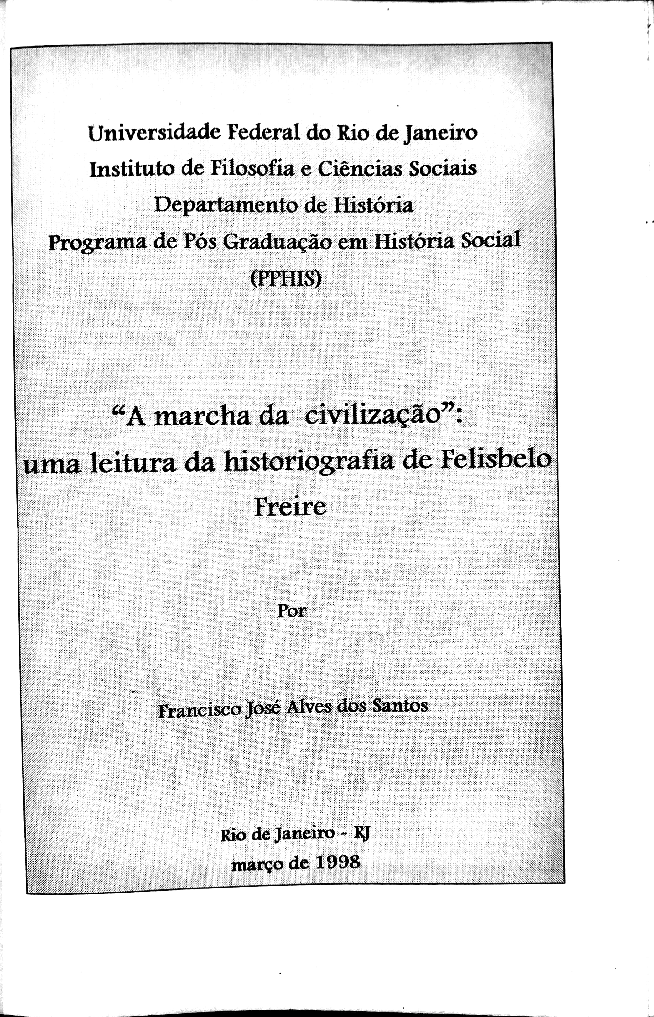 "A Marcha da Civilização": Uma Leitura da Historiografia de Felisbelo Freire