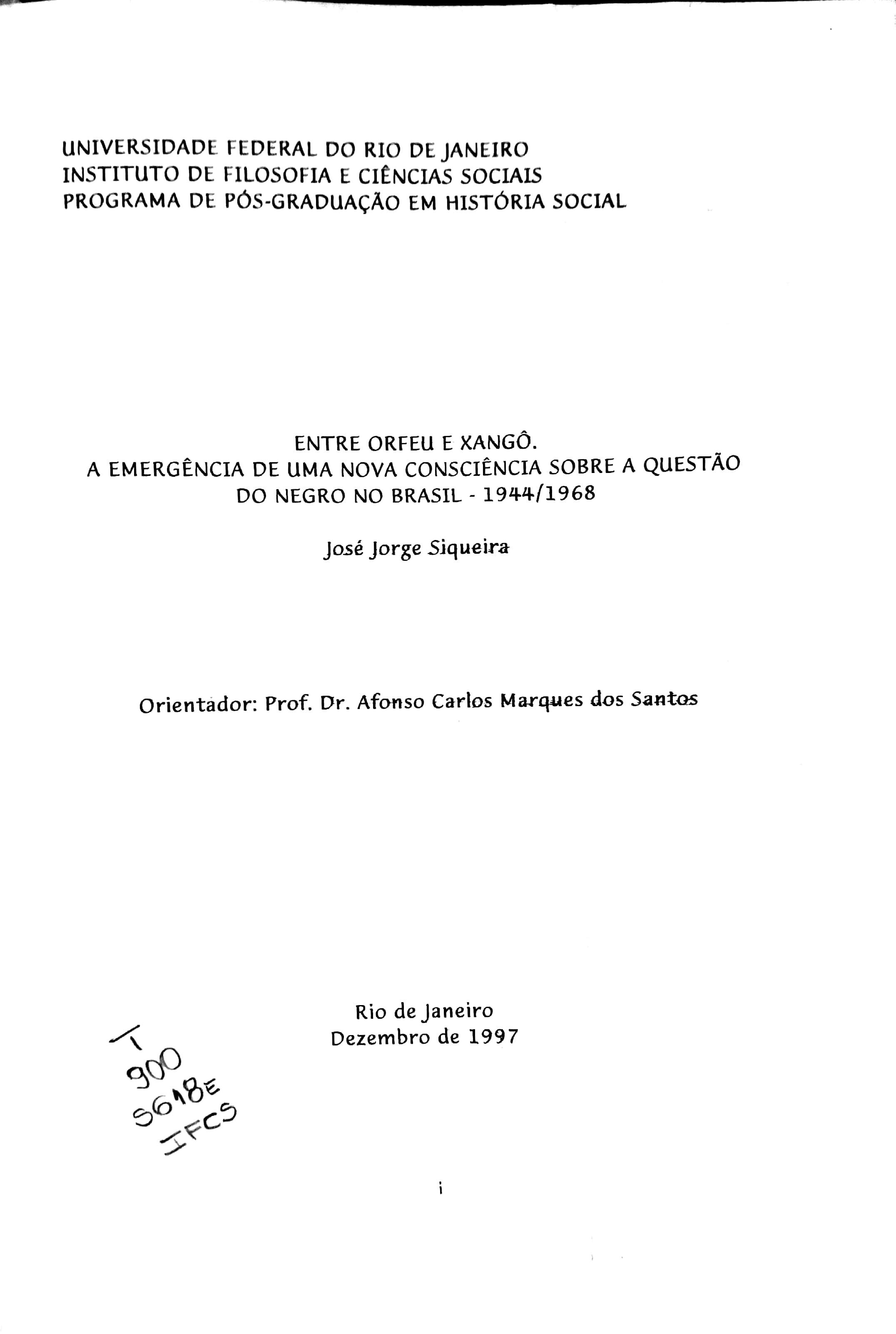 Entre Orfeu e Xangô. A Emergência de uma Nova Consciência sobre a Questão do Negro no Brasil - 1944/1968