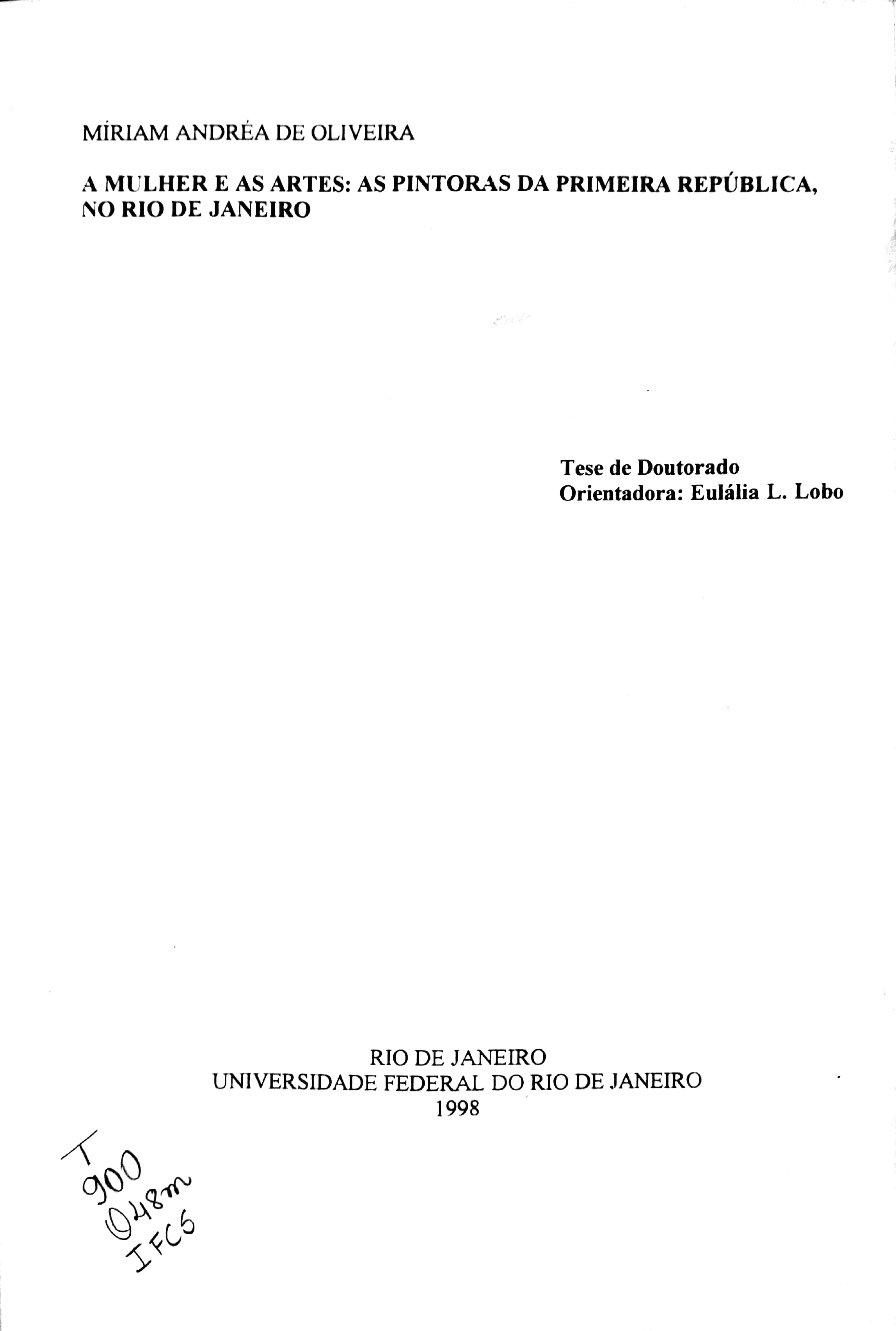 A Mulher e as Artes: As Pintoras da Primeira República, no Rio de Janeiro