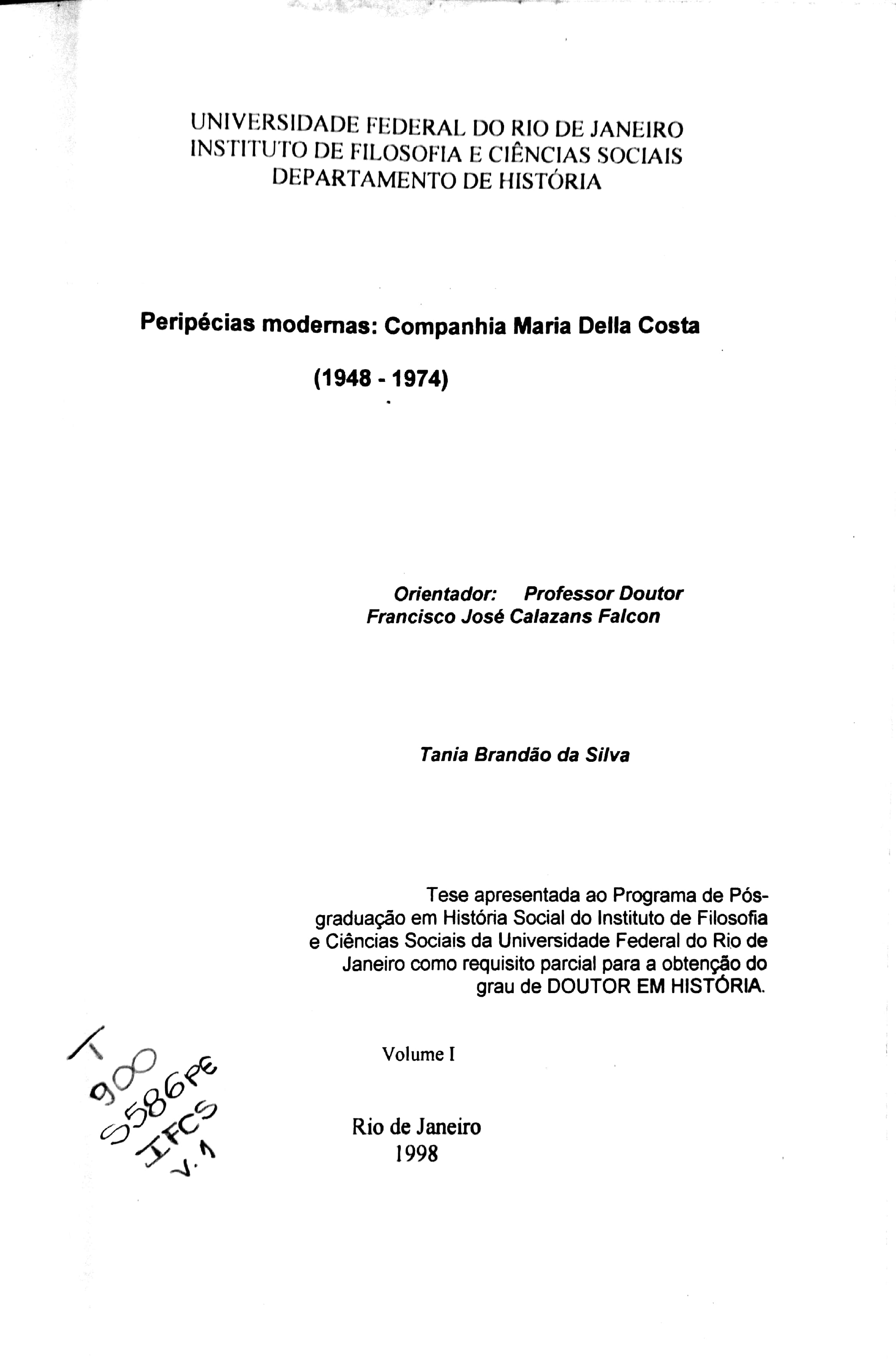 Tania Brandão da Silva (Orientador: Francisco José Calazans Falcon)