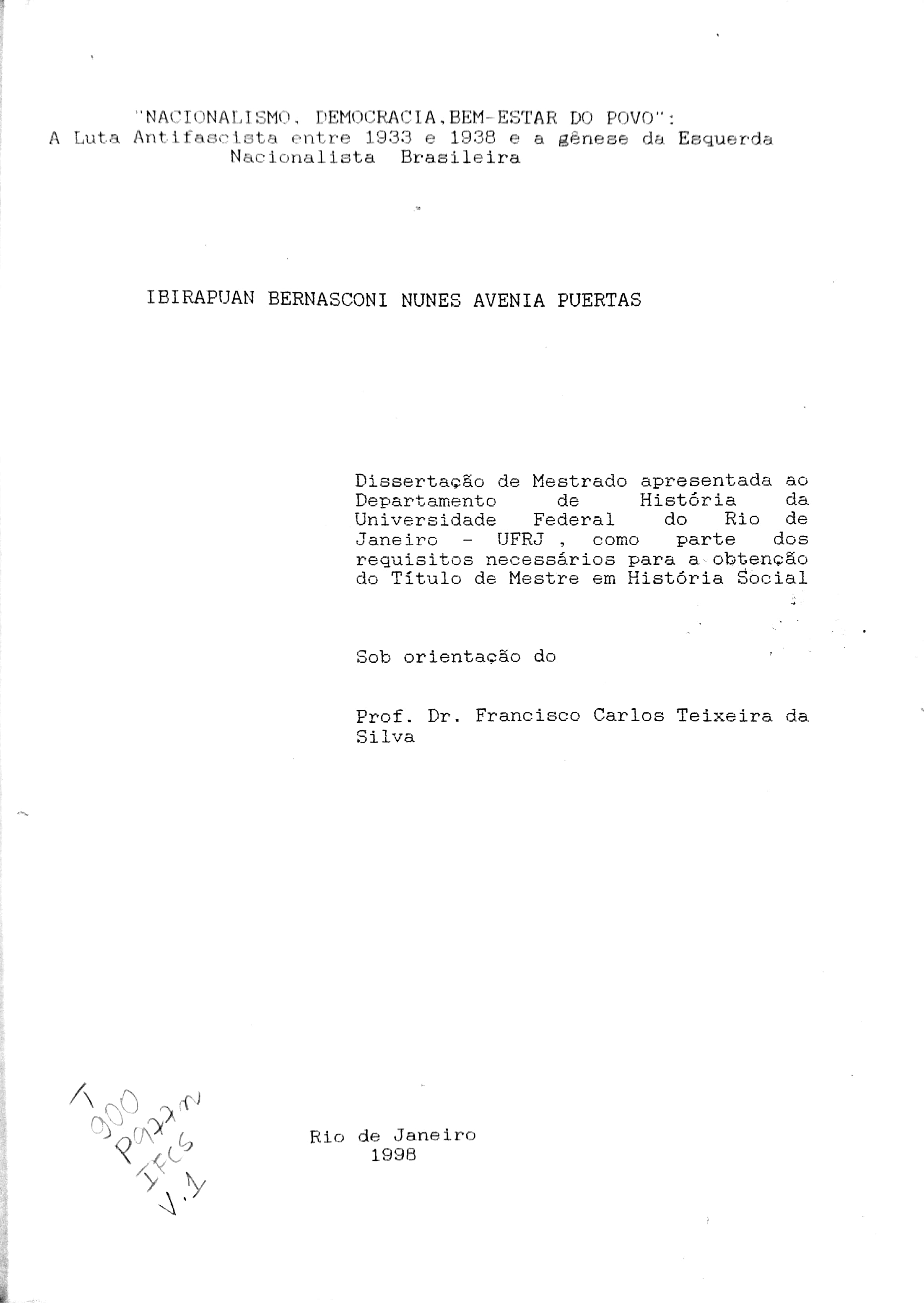 "Nacionalismo, Democracia, Bem-Estar do Povo": A Luta Antifascista no Brasil entre 1933 e 1938 e a Gênese da Esquerda Nacionalista Brasileira