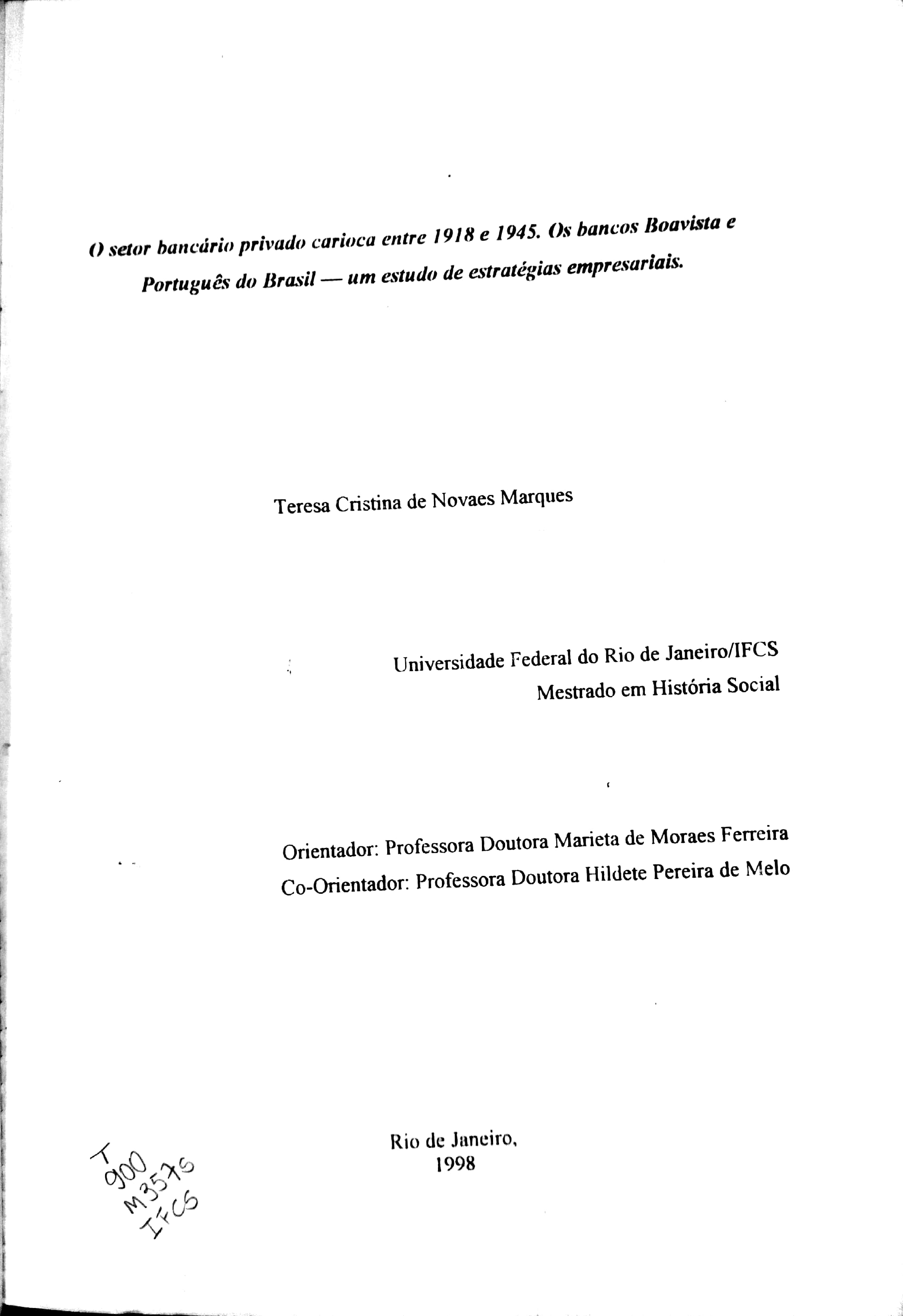 O Setor Bancário Privado Carioca entre 1918 e 1945. Os Bancos Boavista e Português do Brasil - Um Estudo de Estratégias Empresariais