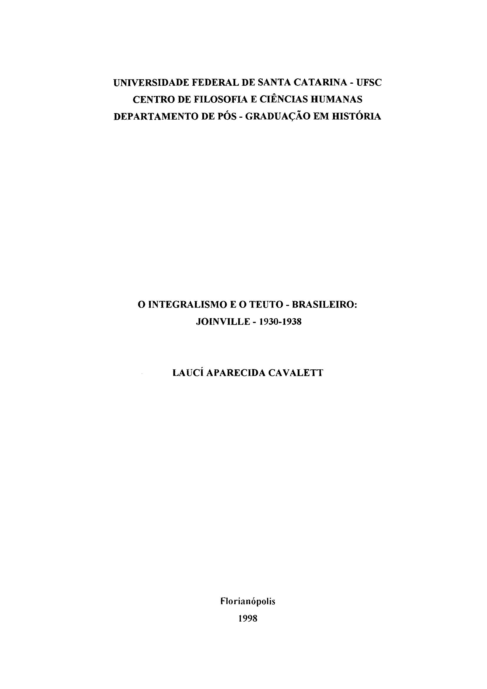 O Integralismo e o Teuto-Brasileiro - Joinville: 1930-1938