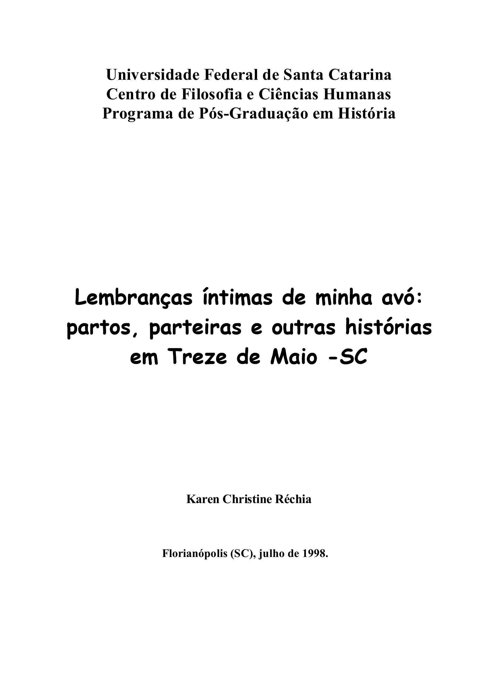 Lembranças Íntimas de Minha Avó: Partos, Parteiras e Outras Histórias em Treze de Maio - SC