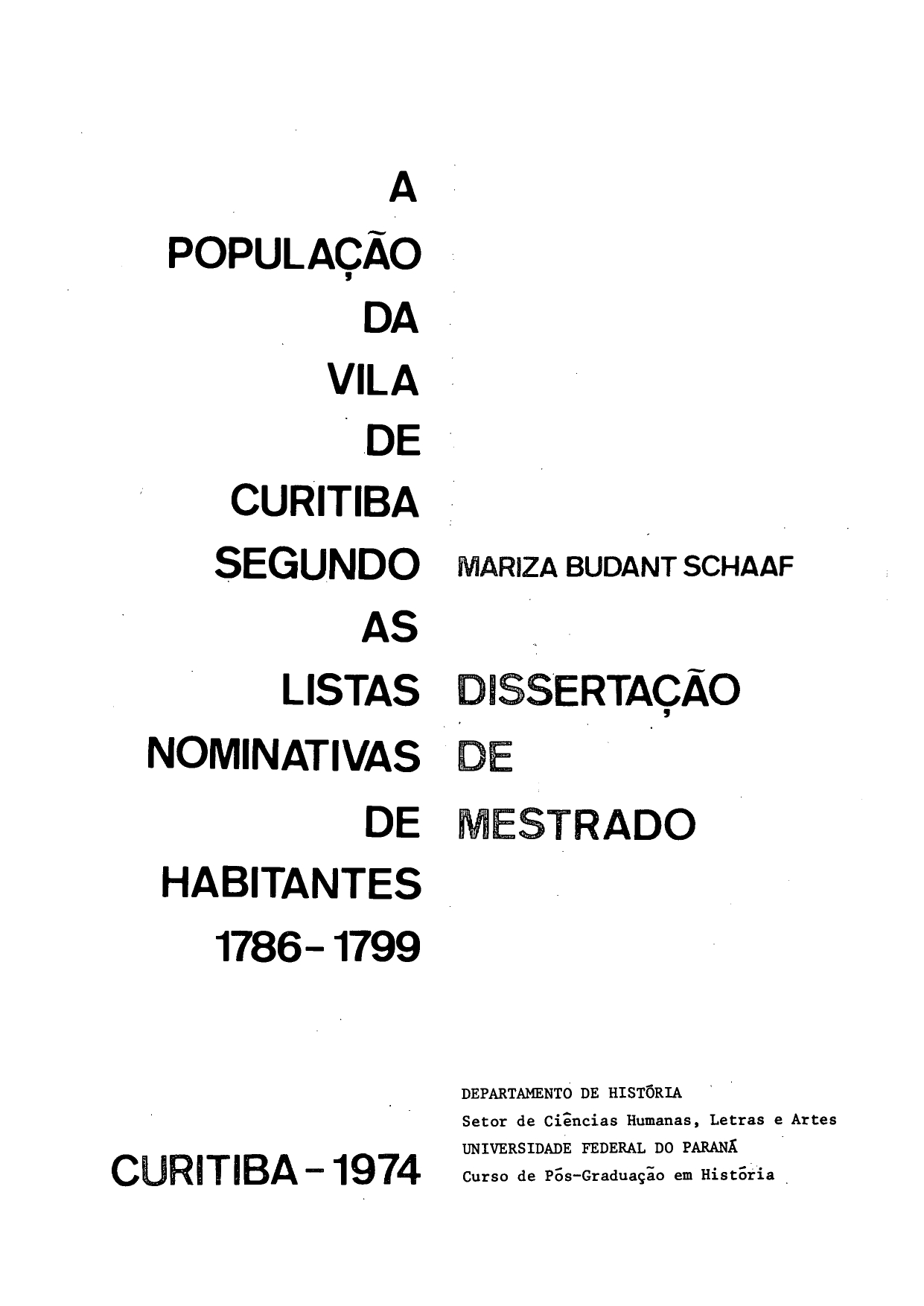 A População da Vila de Curitiba segundo as Listas Nominativas de Habitantes: 1786-1799