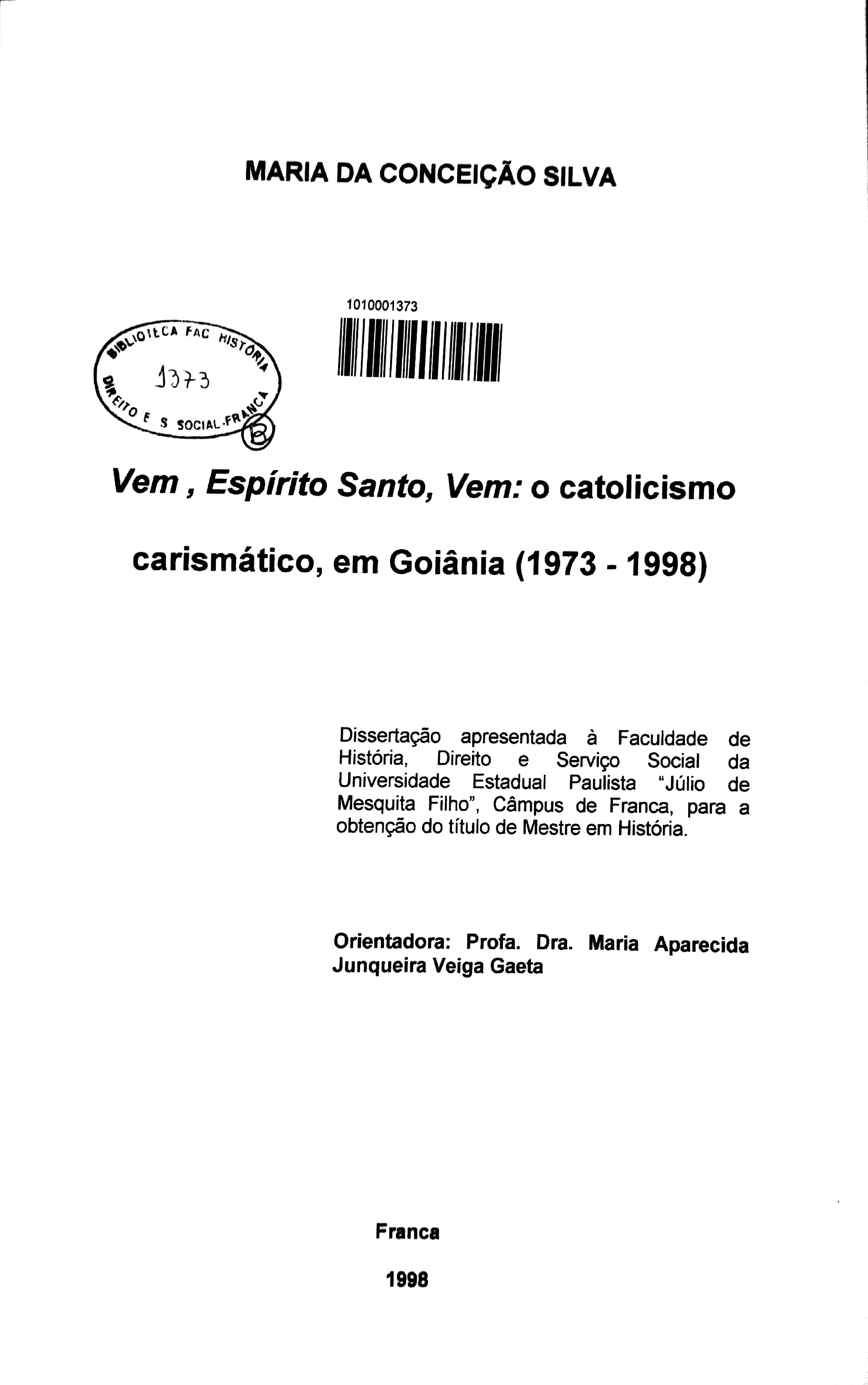 Vem, Espírito Santo, Vem: O Catolicismo Carismático em Goiânia (1973-1998)