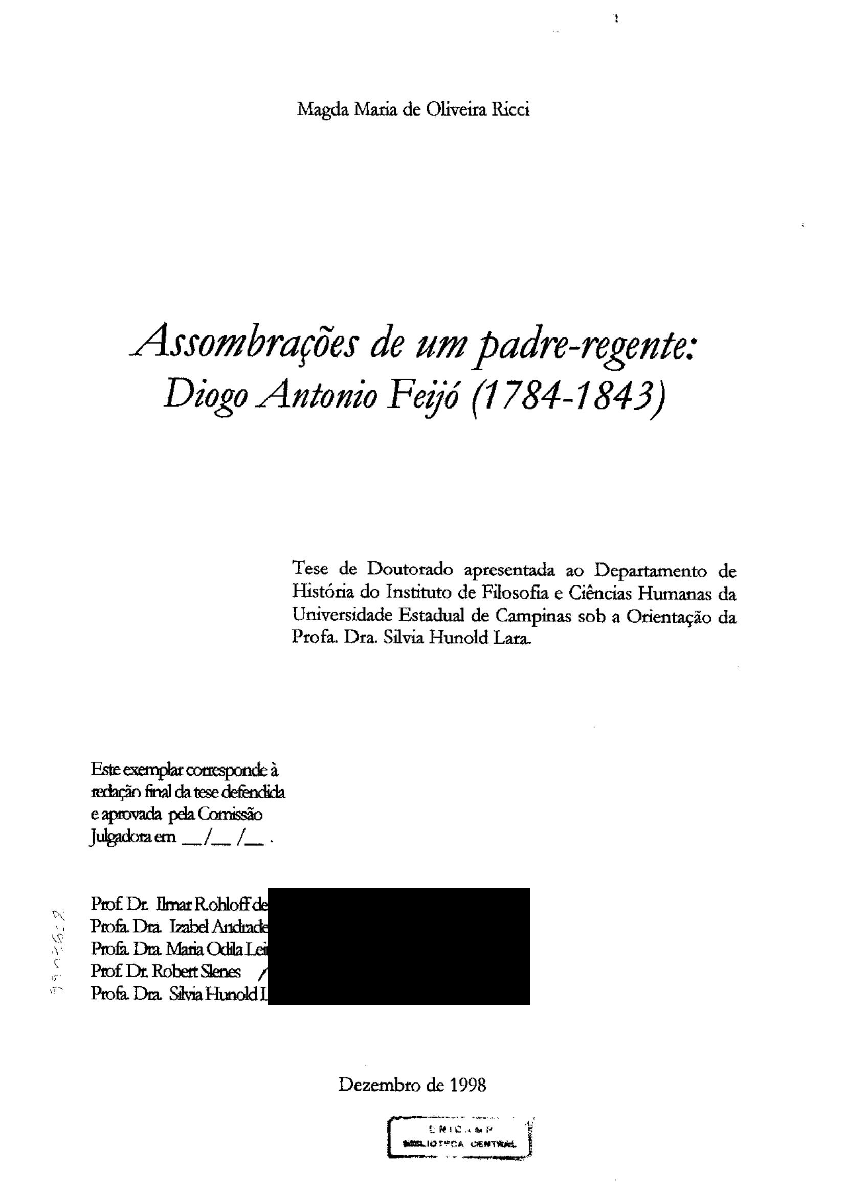 Assombrações de um Padre-Regente: Diogo Antonio Feijó (1784-1843)