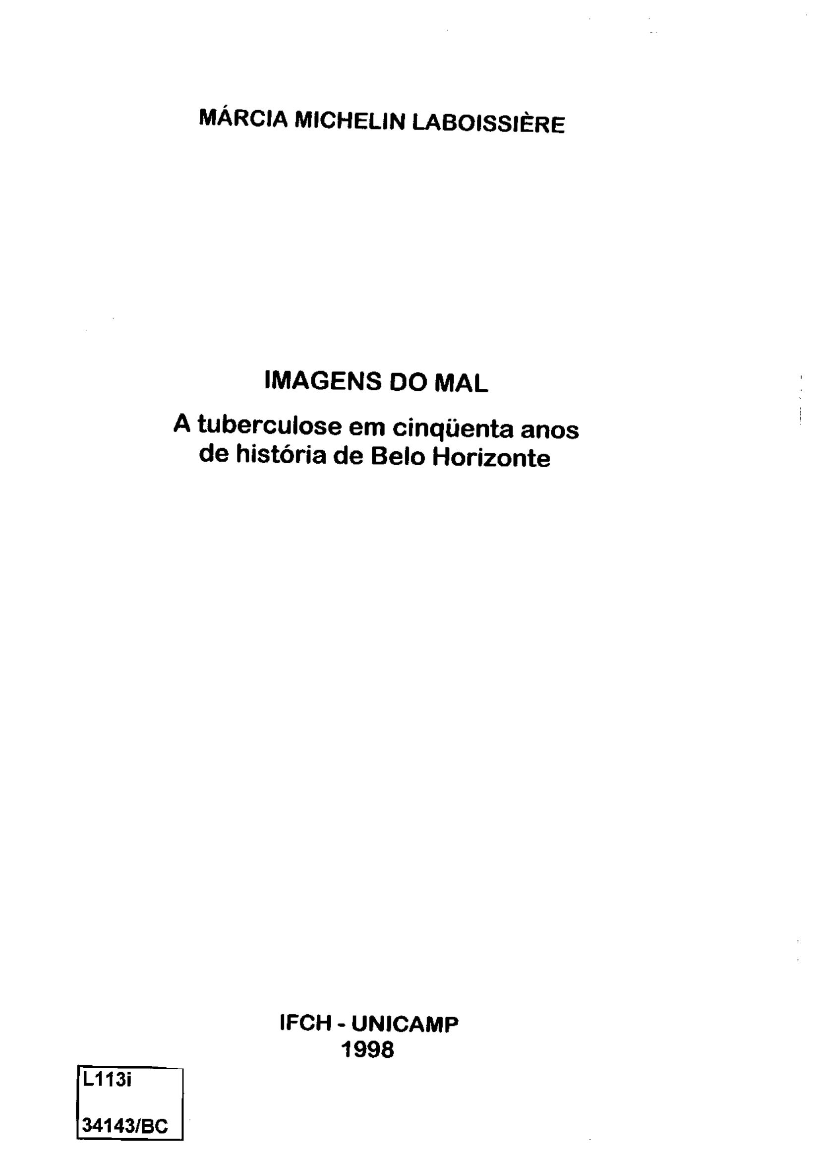 Imagens do Mal: A Tuberculose em Cinqüenta Anos de História de Belo Horizonte