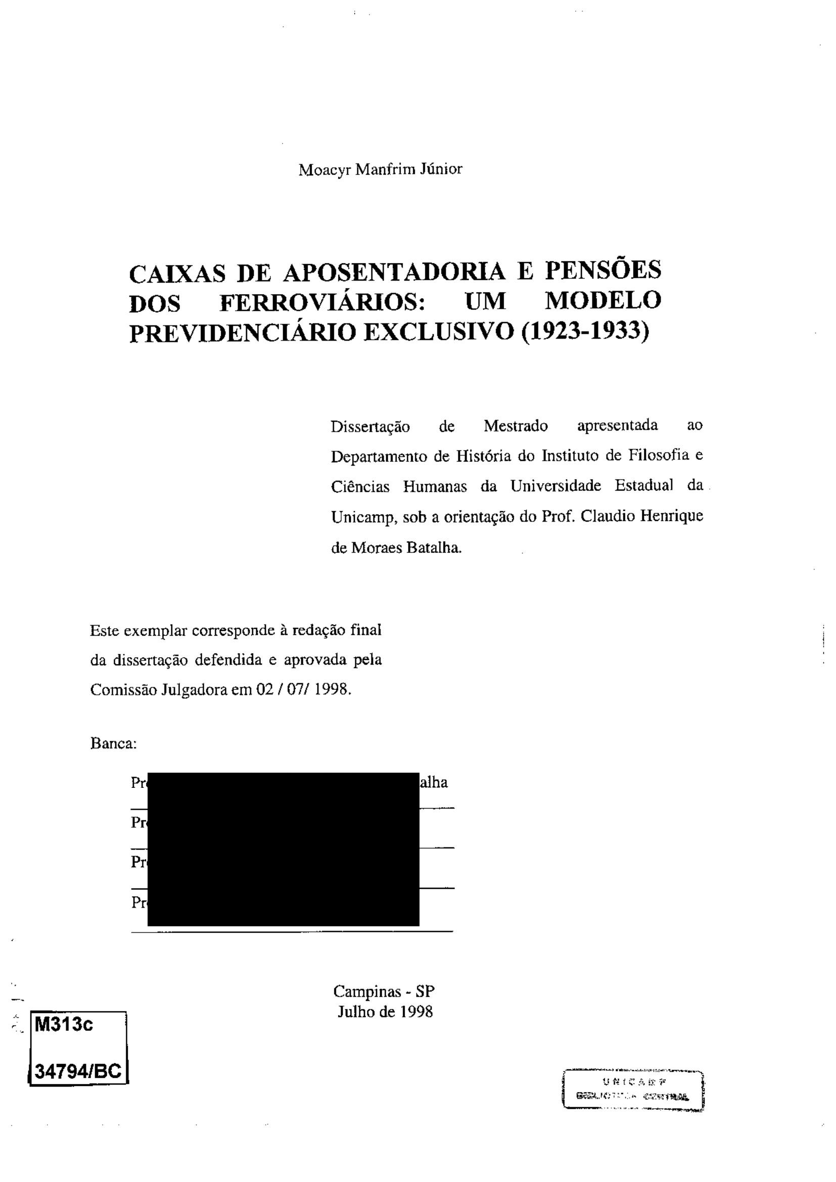 Caixas de Aposentadoria e Pensões dos Ferroviários: Um Modelo Previdenciário Exclusivo (1923-1933)