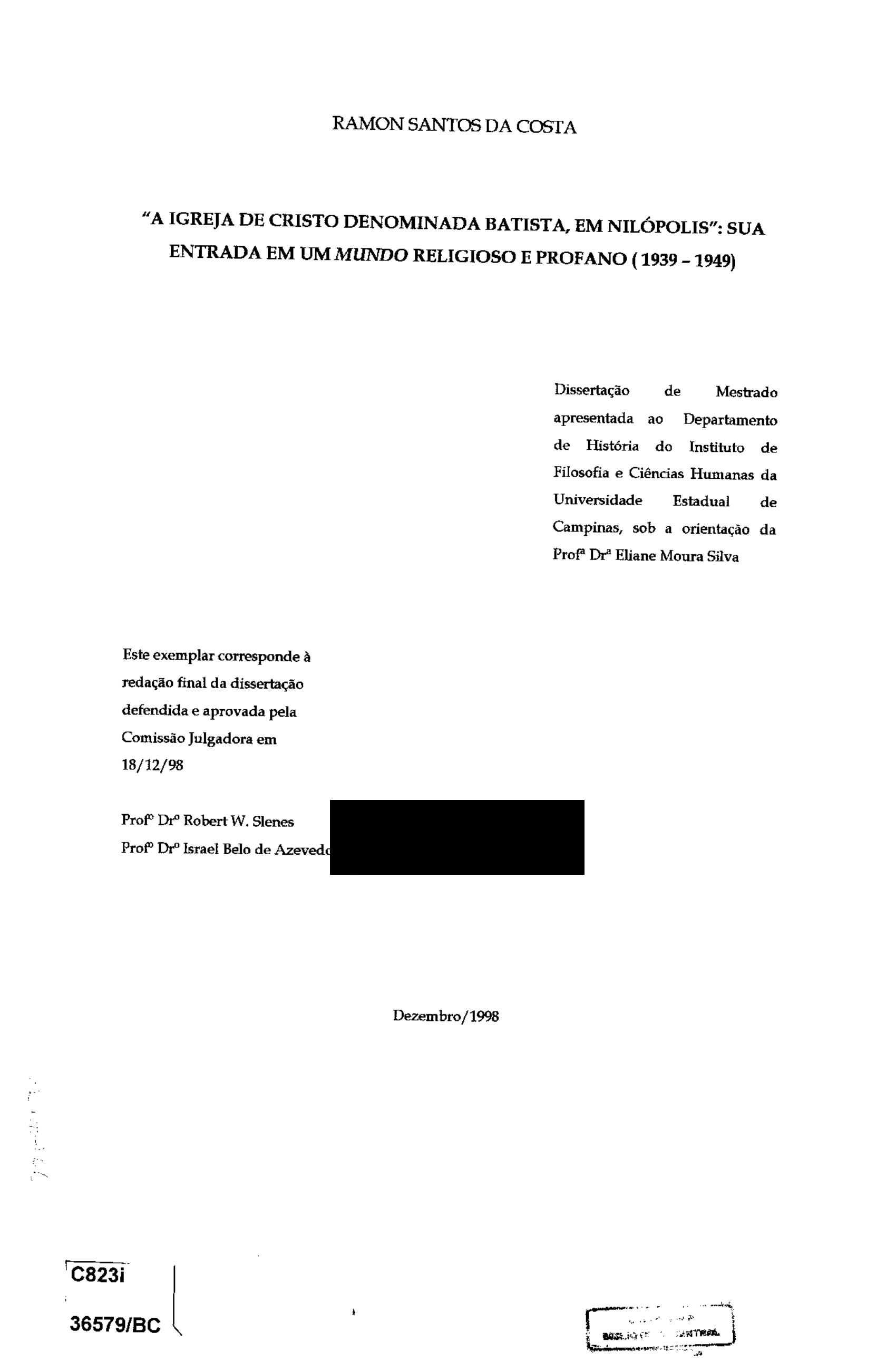 "A Igreja de Cristo Denominada Batista, em Nilópolis": Sua Entrada em um Mundo Religioso e Profano (1939-1949)