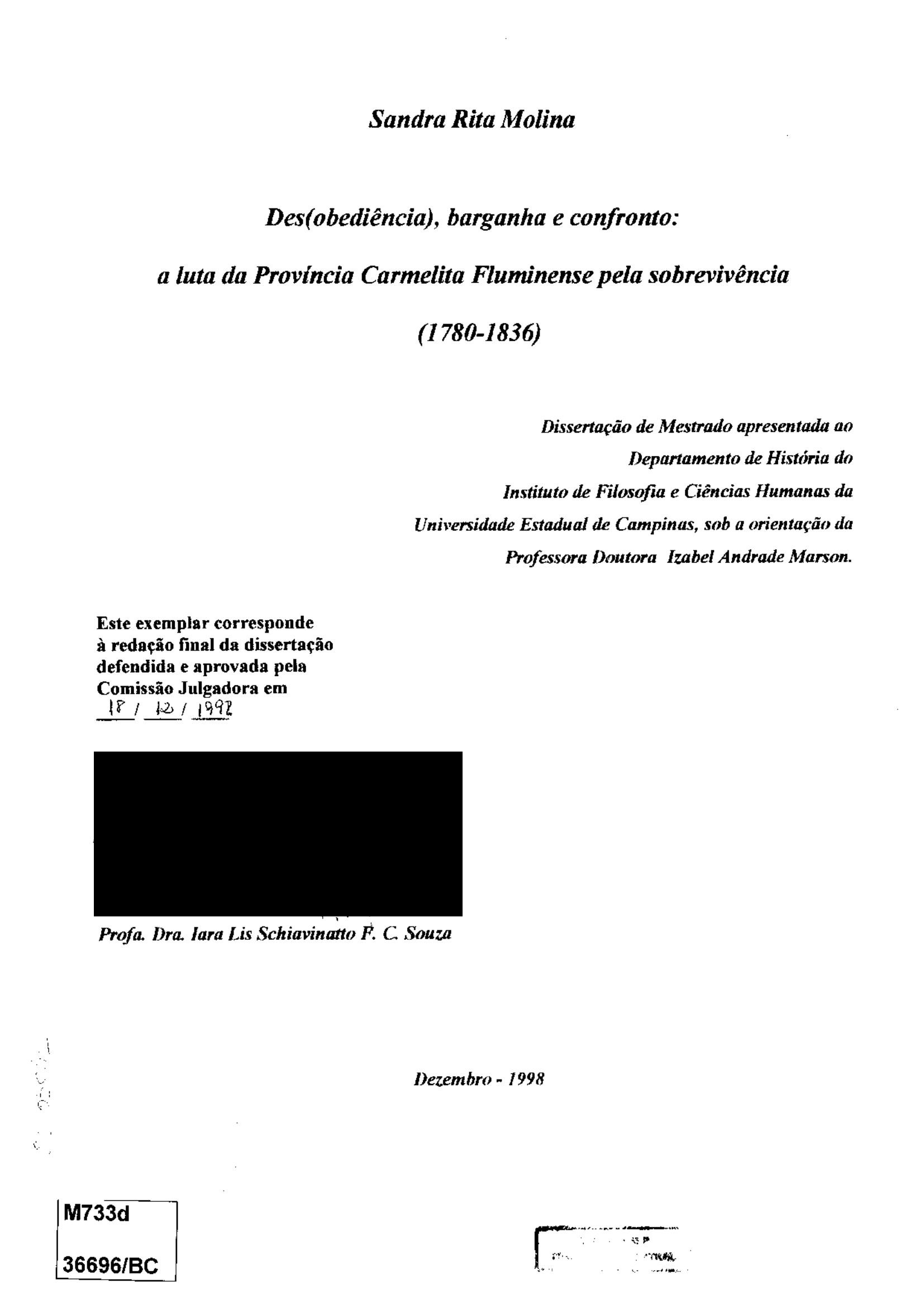 Des(Obediência), Barganha e Confronto: A Luta da Província Carmelita Fluminense pela Sobrevivência (1780-1836)