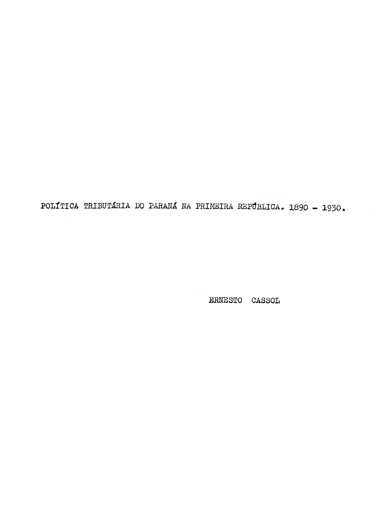 Política Tributária do Paraná na Primeira República. 1890-1930