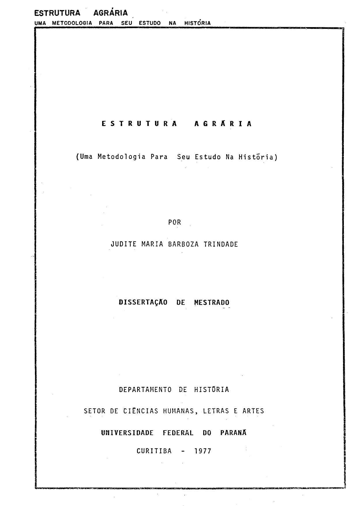 Estrutura Agrária (Uma Metodologia para seu Estudo na História)