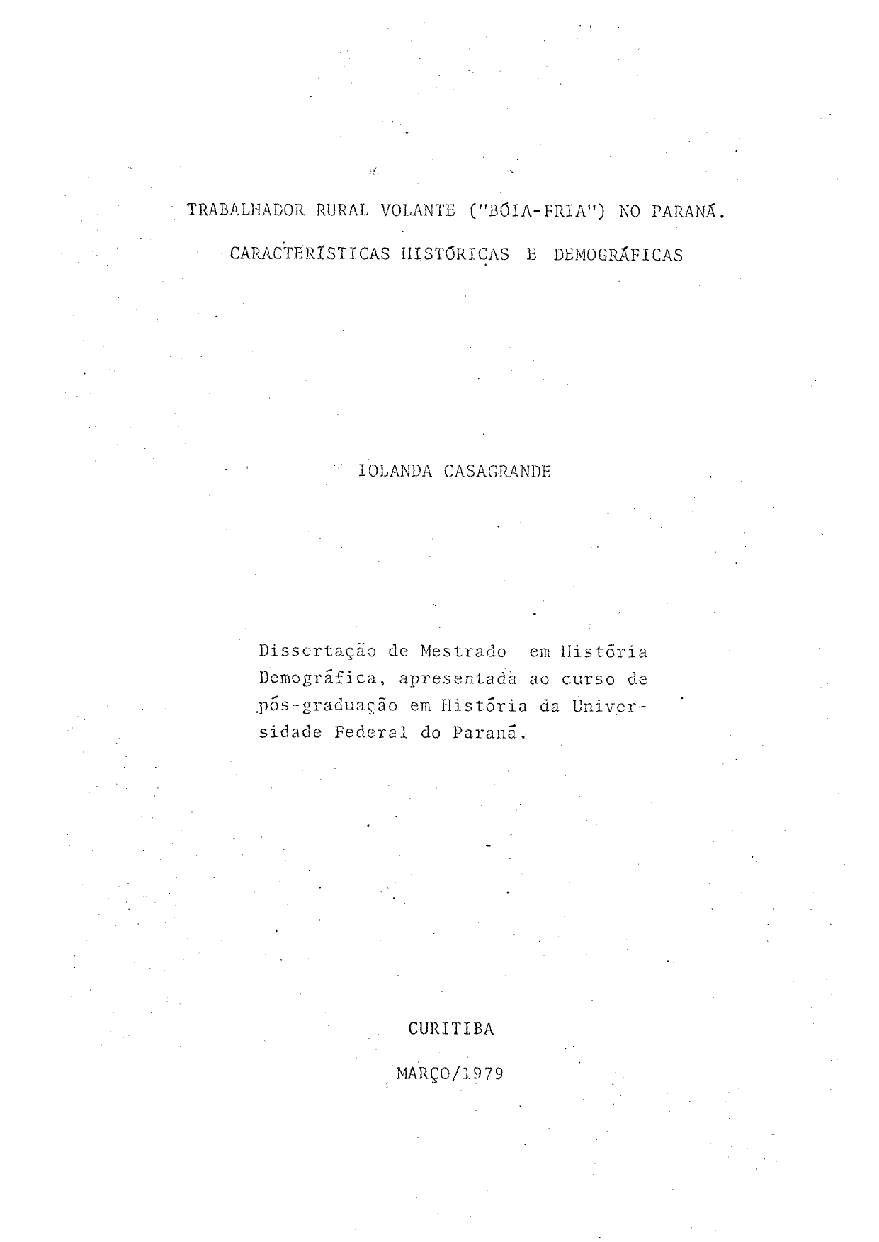 Trabalhador Rural Volante ("Bóia-Fria") no Paraná. Características Históricas e Demográficas
