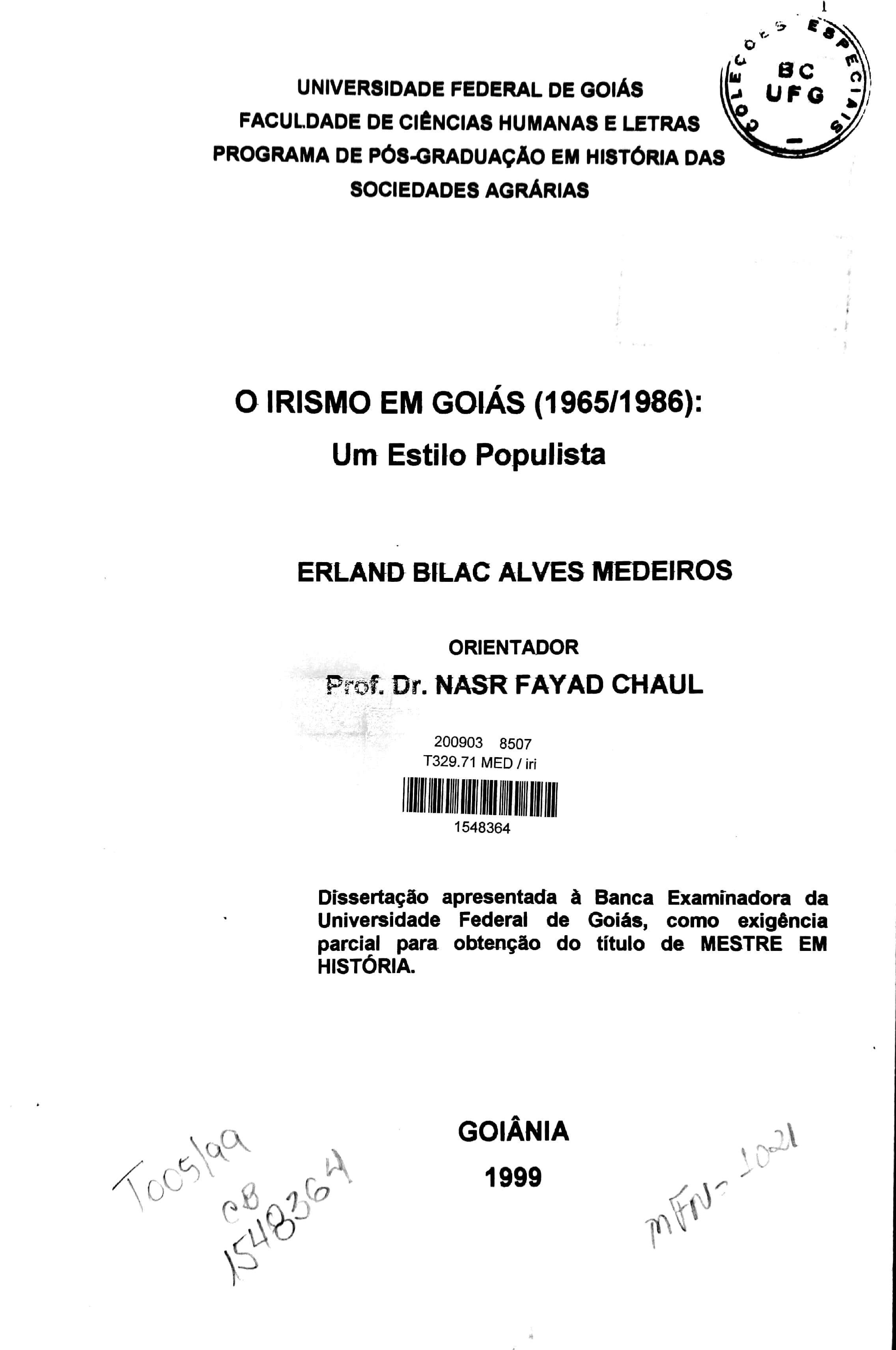 O presente trabalho busca aplicar o resgate da categoria populismo de Ernesto Laclau na história política de Goiás. Categoria esta entendida enquanto uma relação articulatória do antagonismo popular ante o poder, capitaneada pelo político populista Íris Rezende Machado. Para demonstrar esta relação de articulação populista de Íris Rezende tivemos que verificá-la a partir de sua candidatura e prefeito eleito de Goiânia 65/69, época na qual pesou a situação histórica de descenso do antagonismo povo/poder, em função da imposição da ditadura militar. Desde então o populismo irista se desenvolveu tendo no transformismo e no clientelismo as características fundamentais e complementares de sua hegemonia política. Num segundo momento, numa nova conjuntura histórica de emergência dos enfrentamentos populares que marcou o período 79/82, Íris Rezende volta à cena política como principal articulador político rumo ao governo do Estado. Para melhor retratar sua articulação populista, Íris utilizou a campanha eleitoral como principal meio de luta contra a ditadura em Goiás. Por fim, ao tratar dessa articulação vitoriosa, o passo seguinte consistiu em demonstrar o populismo no governo (83/86). Embora também aí sua gestão na direção do Estado situasse numa conjuntura de crise e de antagonismo político, Íris Rezende e sua equipe ou bloco de poder conseguiram absorver transformisticamente o antagonismo existente. Em conclusão, o trabalho procurou defender a idéia de que o populismo é uma categoria presente na prática política atual, indicando que, longe de o recusarmos no jogo político democrático, as articulações políticas passam pelo populismo, visto que ele tem, conforme Ernesto Laclau, a função de organizar a realidade histórica. |