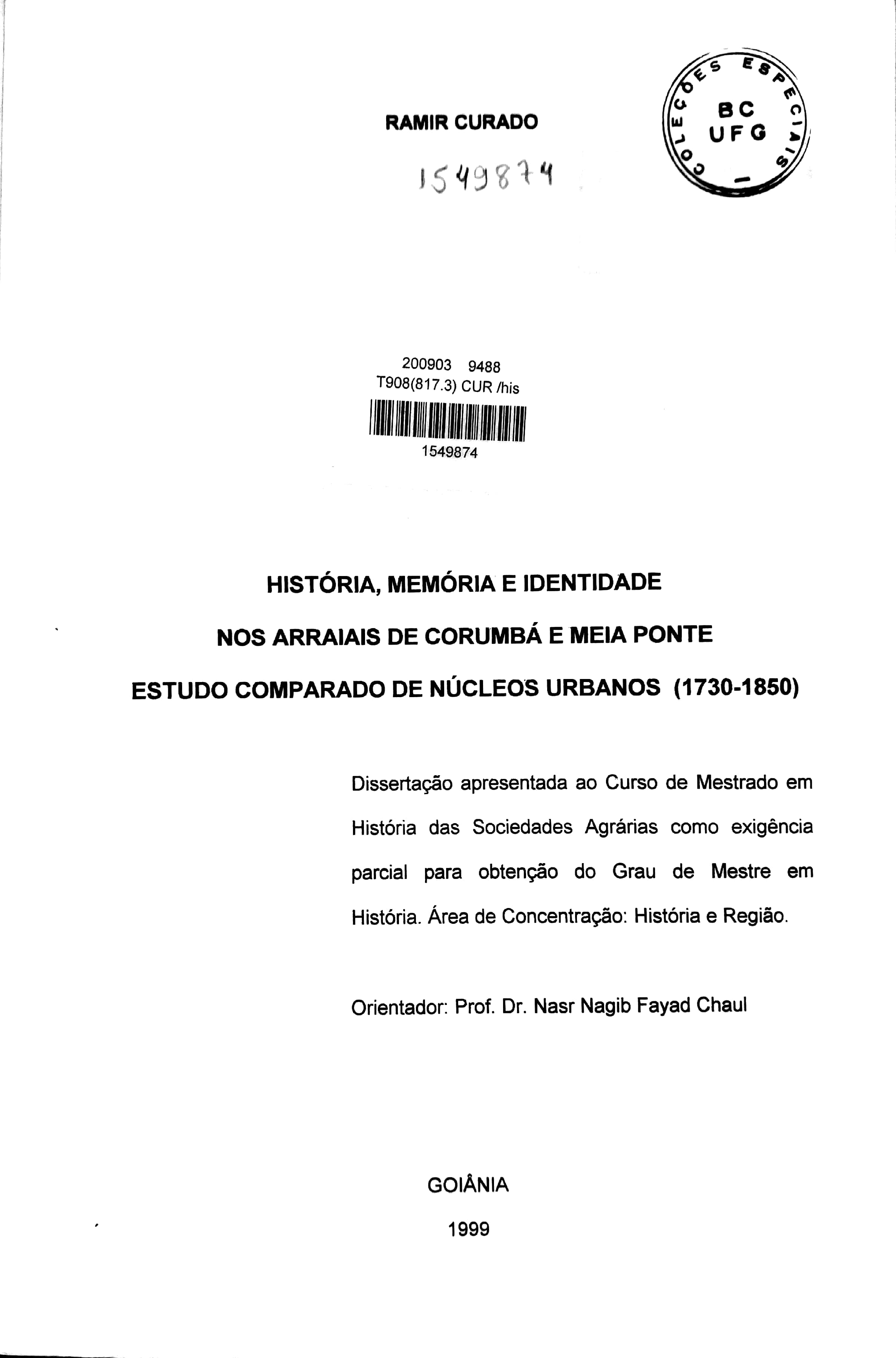 Este trabalho tem como tema a construção da identidade dos arraiais goianos de Corumbá e Meia Ponte através de um estudo comparado entre eles que envolve aspectos sócio-culturais, arquitetônicos-urbanísticos, econômicos e políticos. Suas fontes são tanto a história quanto a memória que constroem tal identidade desde o surgimento destes núcleos urbanos em 1730-31 até a criação da comarca de Meia Ponte em 1850. Ele visa responder três indagações básicas que são as seguintes. Primeira: por que dois arraiais surgidos na mesma época, pelo mesmo motivo e tão próximos um do outro num primeiro momento tiveram processos diferenciados de desenvolvimento ao ponto de um subordinar o outro nos âmbitos religioso-institucional, político-administrativo e econômico-empresarial ?. Segunda: quais foram as conseqüências desta subordinação para os arraiais nela envolvidos ?. Terceira: como foi possível ao arraial de Corumbá superar estes processos de dominação? E ao mesmo tempo, que estudamos as origens dos moradores livres, de Corumbá e Meia Ponte, a forma com que se viam e que relacionavam com os moradores do arraial vizinho, procuramos compreender também as relações que existiam entre os senhores e os seus escravos destas localidades, tanto no duro cotidiano do trabalho quanto no tempo livre das alegres festas religiosas. Contextualizando estes cenários urbanos mostramos um pouco do panorama histórico goiano e brasileiro da época em que tais fatos ocorreram. |