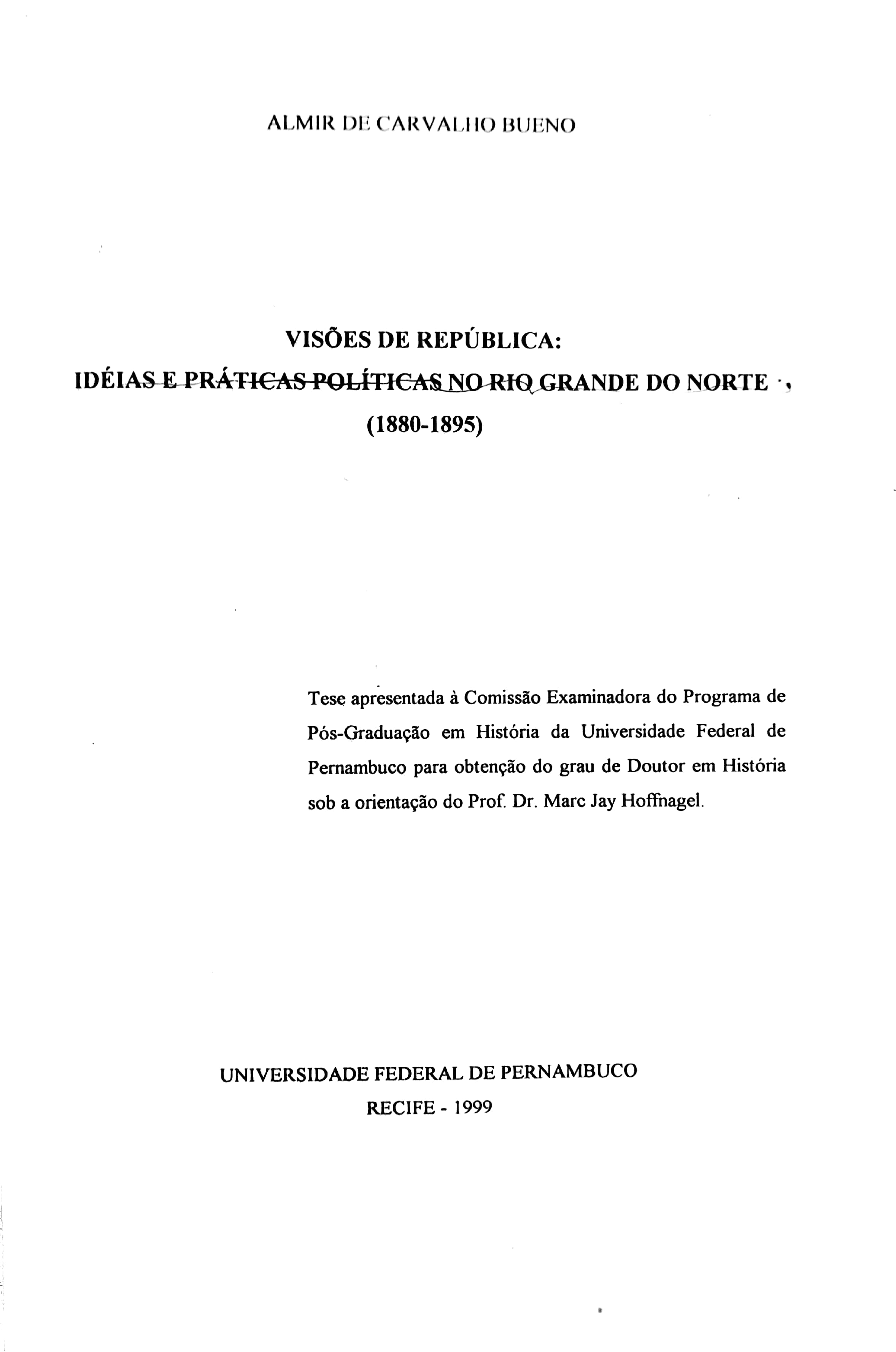 Visões de República: Idéias e Práticas Políticas no Rio Grande do Norte (1880-1895)