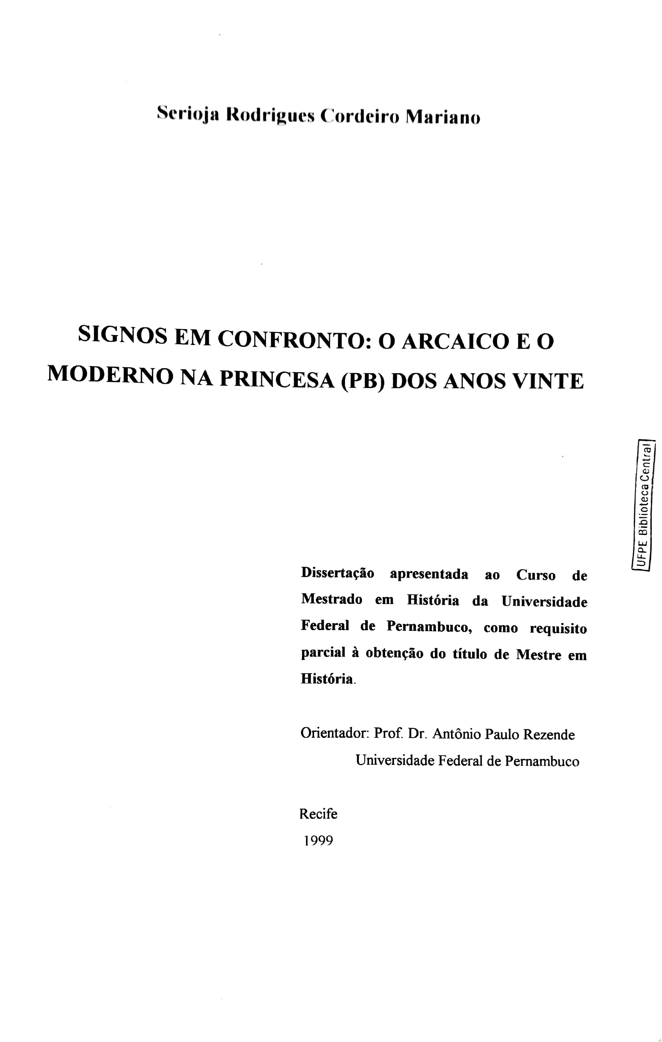 Signos em Confronto: O Arcaico e o Moderno na Princesa (PB) dos Anos Vinte