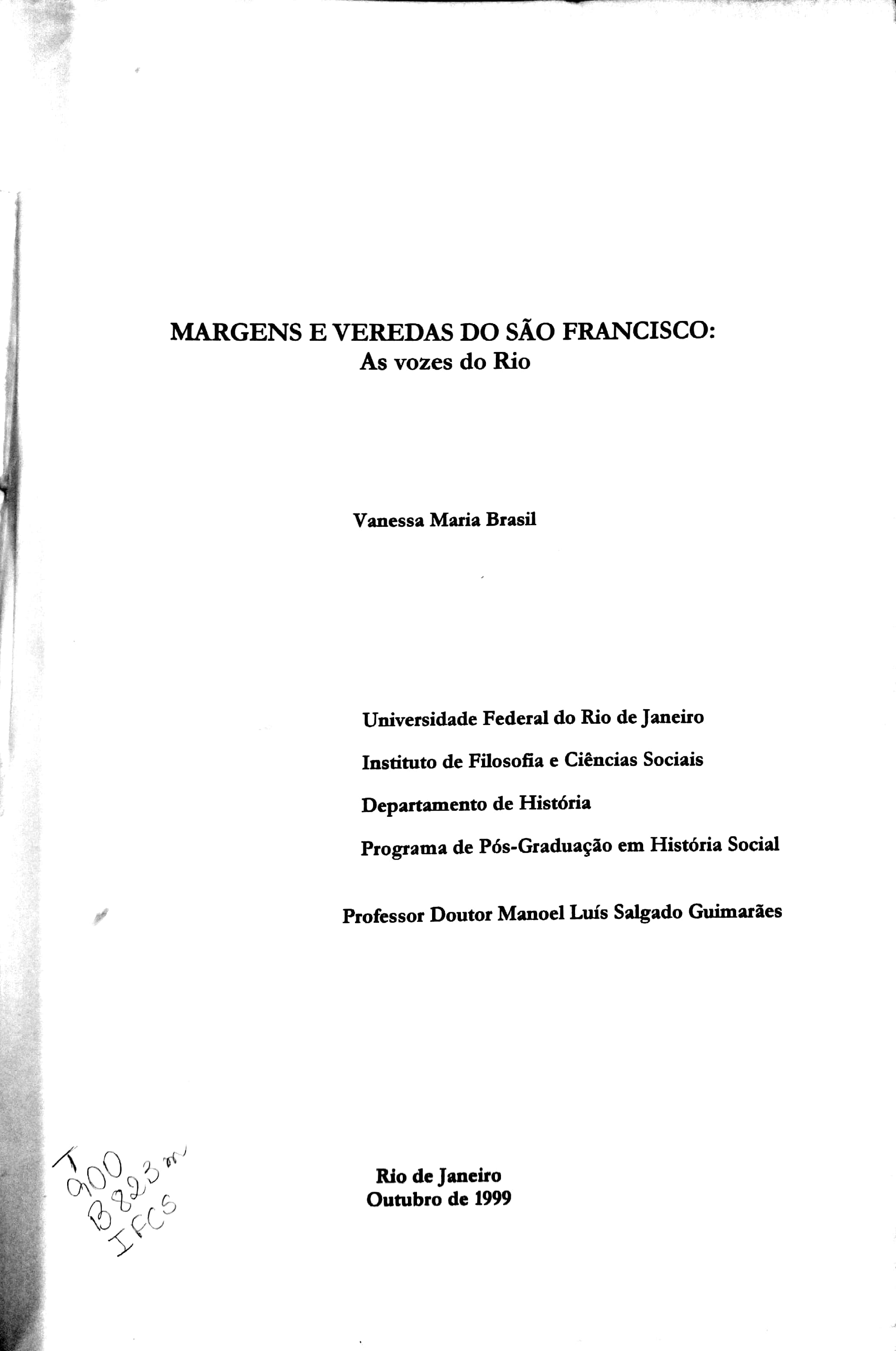 Vanessa Maria Brasil (Orientador: Manoel Luiz Lima Salgado Guimarães)