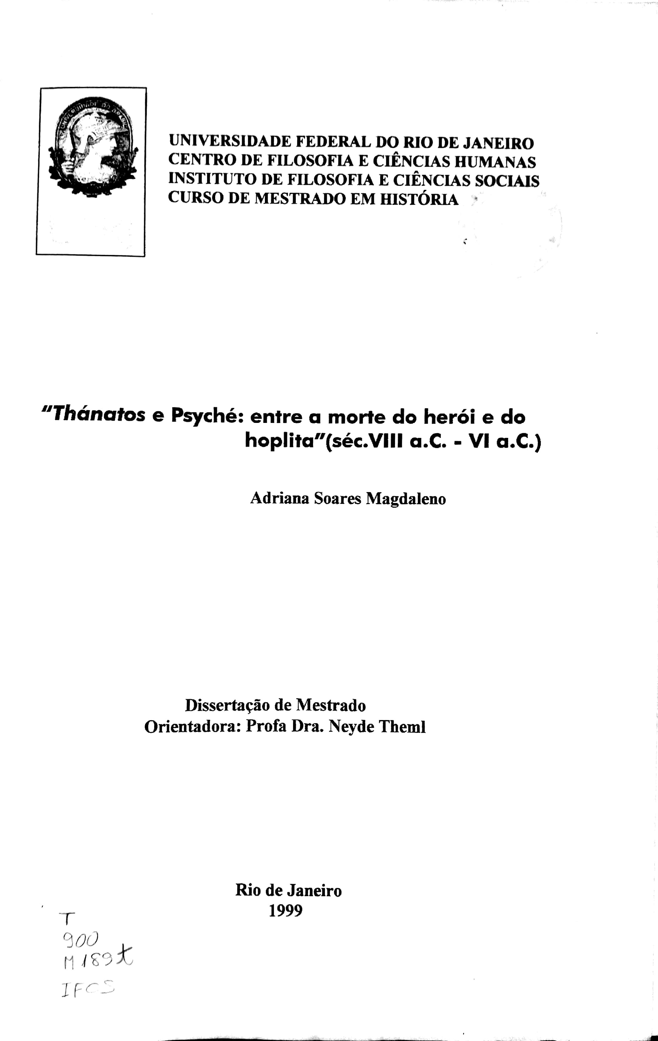 Thánatos e Psyché: Entre a Morte do Herói e do Hoplita (Séc. VIII a.C. - VI a.C.)