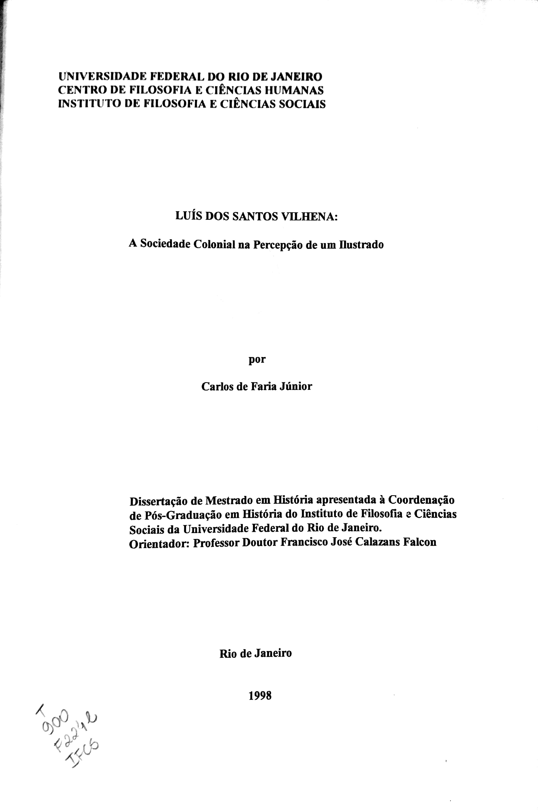 Luís dos Santos Vilhena: A Sociedade Colonial na Percepção de um Ilustrado