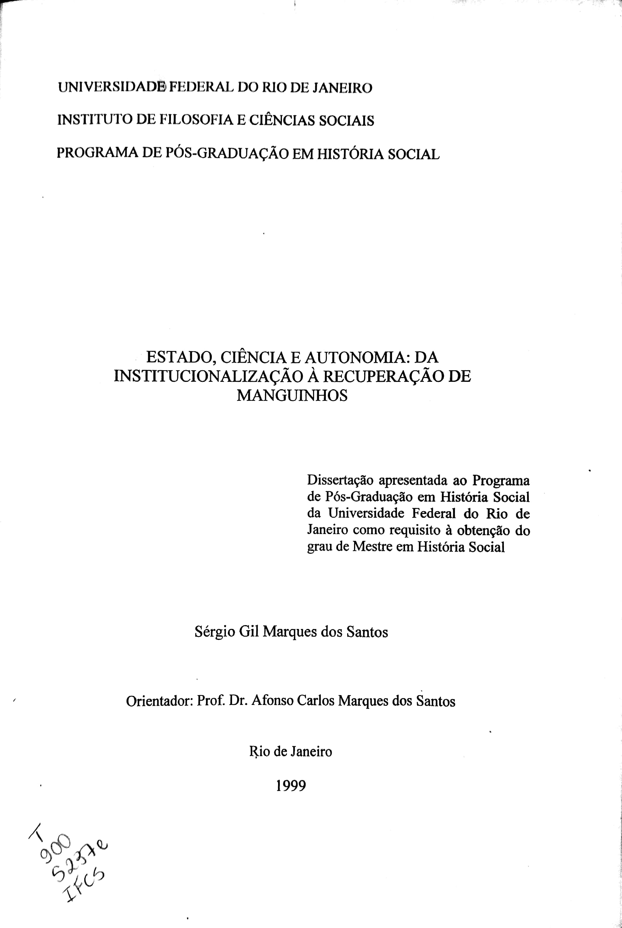 Este trabalho trata das relações entre Estado, ciência e tecnologia no campo da saúde pública, a partir da análise de uma instituição, a Fundação Oswaldo Cruz. Mostro que o período de 1900 a 1937 corresponde à ascensão e ao declínio de um projeto voltado para a construção de uma ciência biomédica brasileira, em bases relativamente autônomas. Examinei, ainda, o período compreendido entre 1975 e 1979, quando este projeto foi retomado, tendo o Instituto Pasteur de Paris como modelo. A história institucional de Manguinhos parece corroborar a pertinência das noções de apogeu, ostracismo e recuperação, a partir de sua relação com o Estado. A dissertação discute os graus e limites da intervenção do Estado e da autonomia possível na instituição, além de fazer uma análise comparativa das trajetórias dos institutos Pasteur e de Manguinhos. |