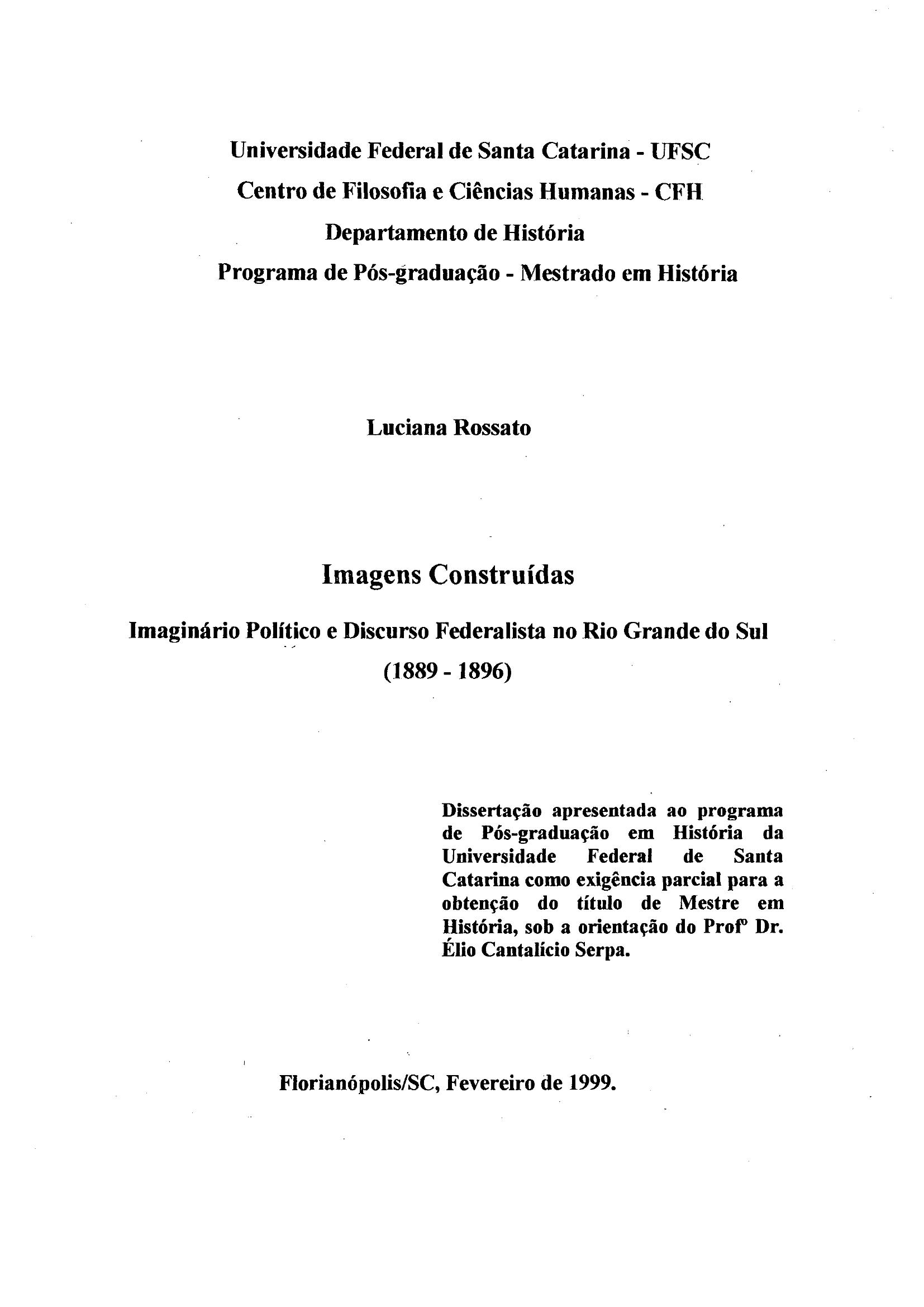 Esta dissertação tem por finalidade analisar o discurso federalista no RS após a Proclamação da República. Após 1889, o RS dividiu-se em facções políticas porta-vozes de projetos diferenciados de República: o projeto positivista do PRR e o projeto liberal dos federalistas. Estes, recorreram ao imaginário como forma de legitimar sua oposição ao projeto político positivista. O apelo a mitos e alegorias locais e universais, como o mito do gaúcho, e o retorno a um passado de glórias, como a Revolução Farroupilha, estiveram na base da construção discursiva dos federalistas. Além disso é discutido também o processo de heroificação de Gaspar Silveira Martins, que, de monarquista foi transformado no representante da democracia sulina e defensor da liberdade. No último capítulo é discutida a produção historiográfica sobre a Revolução Federalista nos últimos 100 anos. Percebe-se como o discurso posterior sobre a mesma foi mudando conforme o contexto político no qual esteve envolvido o estado do Rio Grande do Sul. |