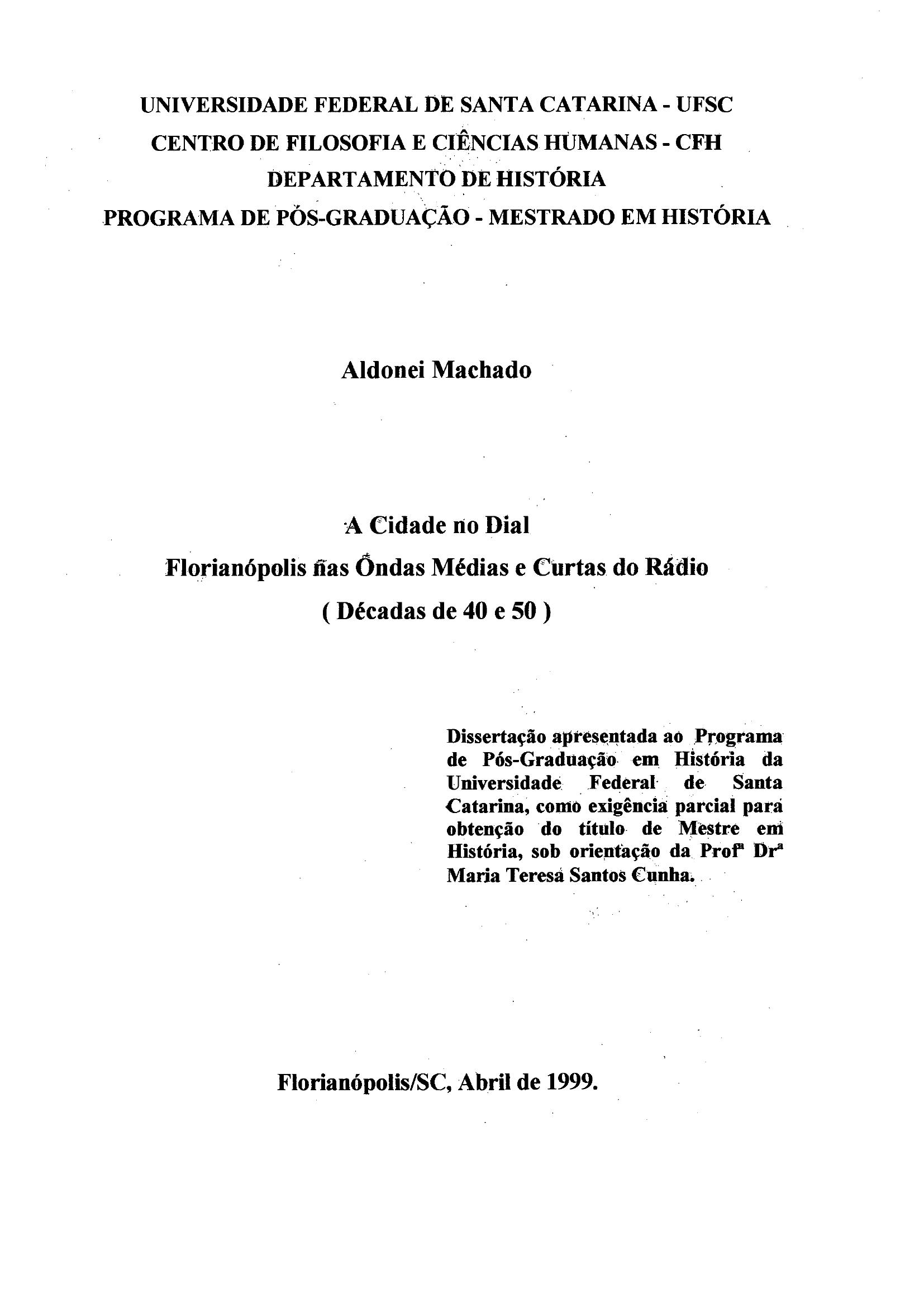 Tece e conta alguns fragmentos da história do rádio florianopolitano, mas, principalmente, conta um fragmento da história de Florianópolis através das suas duas primeiras emissoras de rádio - Guarujá e Diário da Manhã - as quais foram inauguradas durante as décadas de 40 e 50. Analisa a radiodifusão em seus inícios em Florianópolis, discute a relação das emissoras locais com as transformações urbanas ocorridas na cidade e suas imbricações enquanto símbolo de modernidade. Mostra que a radiodifusão, ao invadir e circular pelas ruas, praças, teatros, bares e lares, transformou o cotidiano de muitas pessoas, fomentando também a criação de novos ambientes e diferentes relações culturais e de sociabilidades. Discute a incipiência de uma indústria cultural em Florianópolis, bem como inseri o rádio local em contextos históricos mais amplos, pois através dos microfones das rádios tentava-se 'civilizar pessoas', plasmar valores e condutas sociais, além de discutir idéias e problemas que perpassavam a própria cidade. |