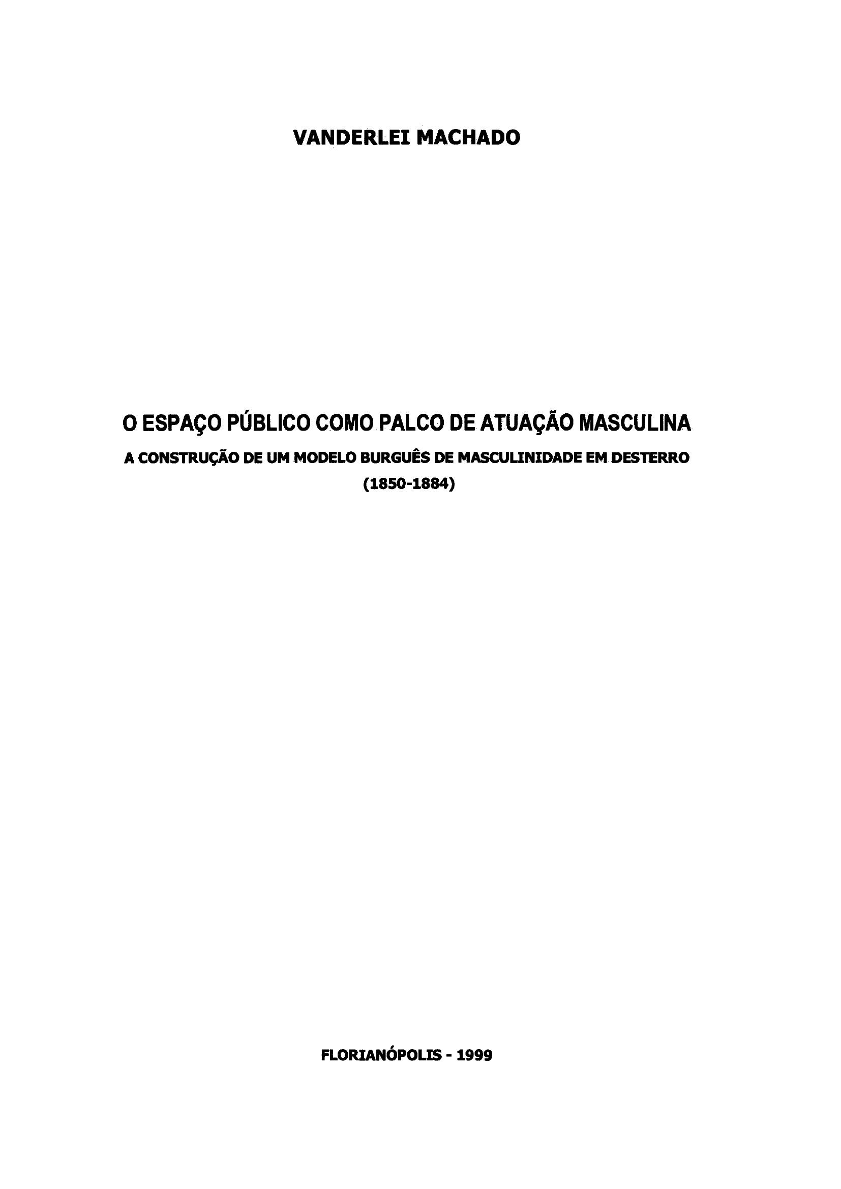 O Espaço Público como Palco de Atuação Masculina: A Construção de um Modelo Burguês de Masculinidade em Desterro (1850-1884)