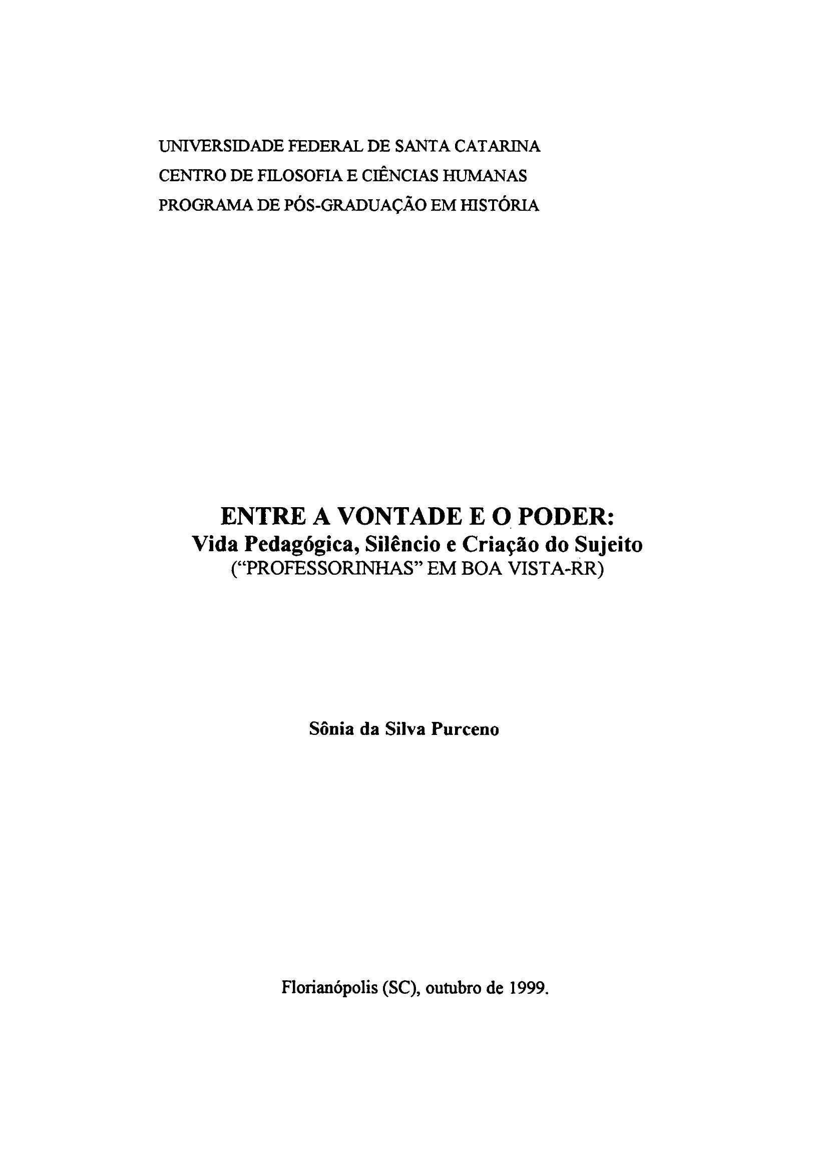 Entre a Vontade e o Poder: Vida Pedagógica, Silêncio e Criação do Sujeito (Professorinhas em Boa Vista-RR)