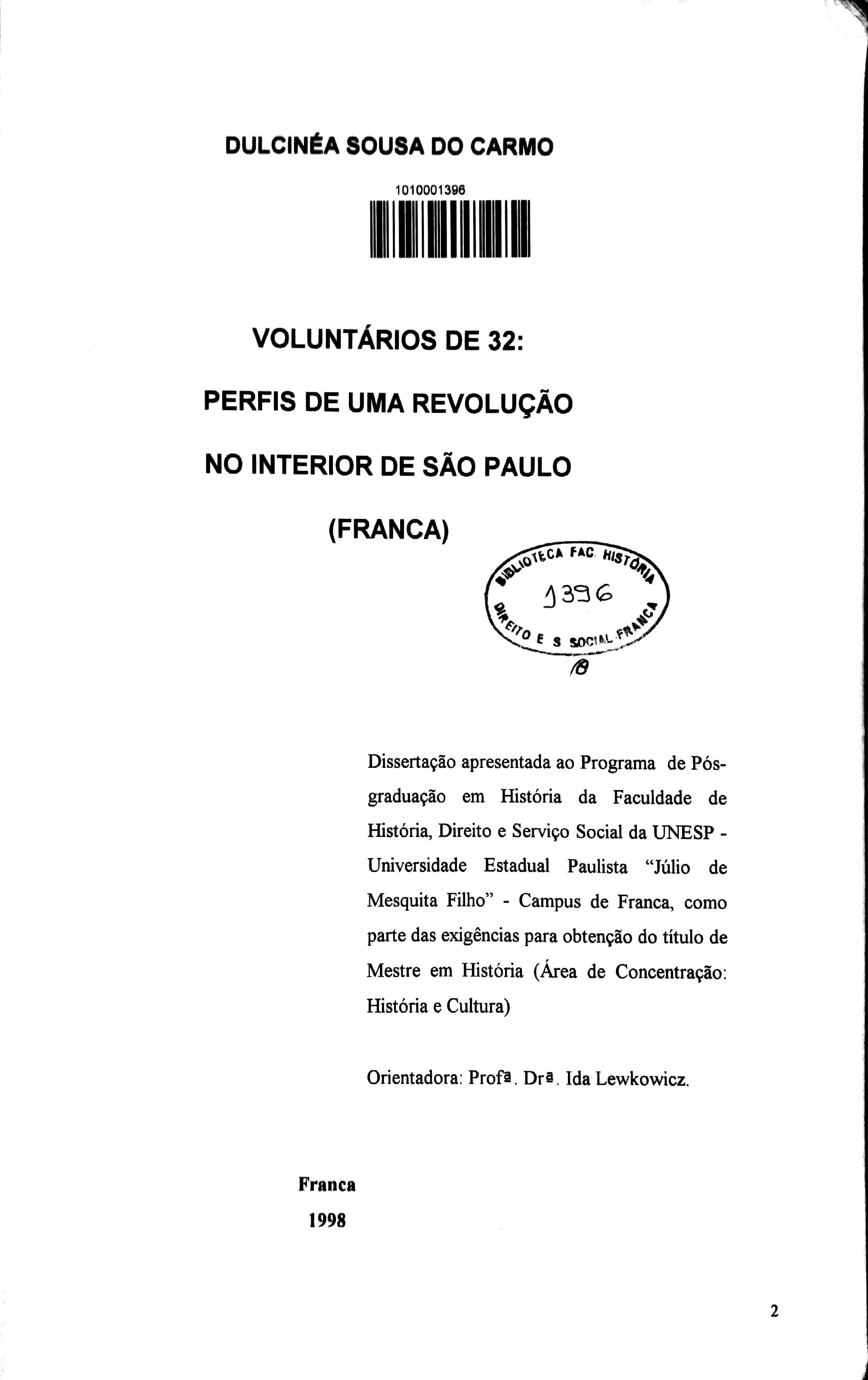 Voluntários de 32: Perfis de uma Revolução no Interior de São Paulo (Franca)