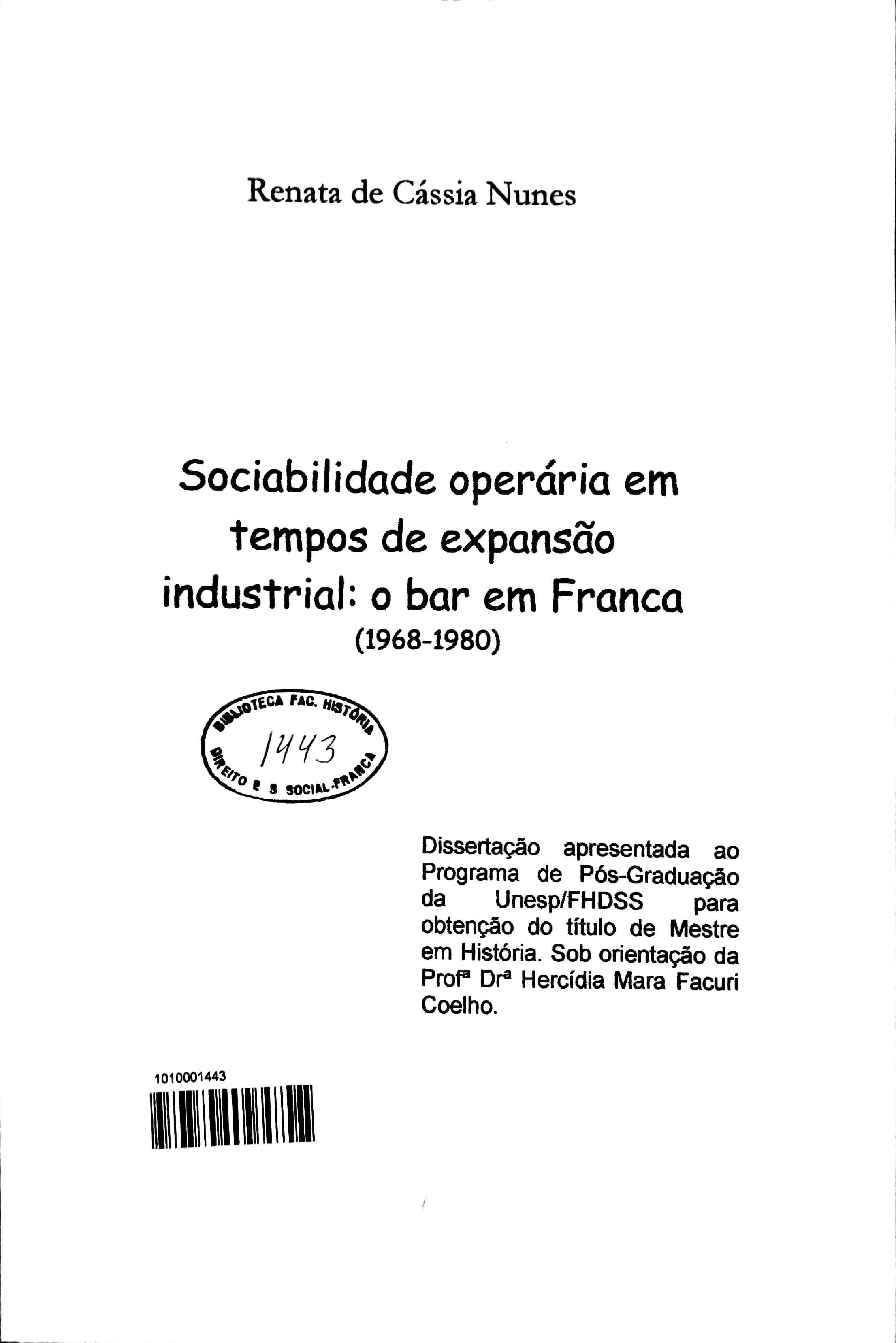 Sociabilidade Operária em Tempos de Expansão Industrial: O Bar em Franca (1968-1980)