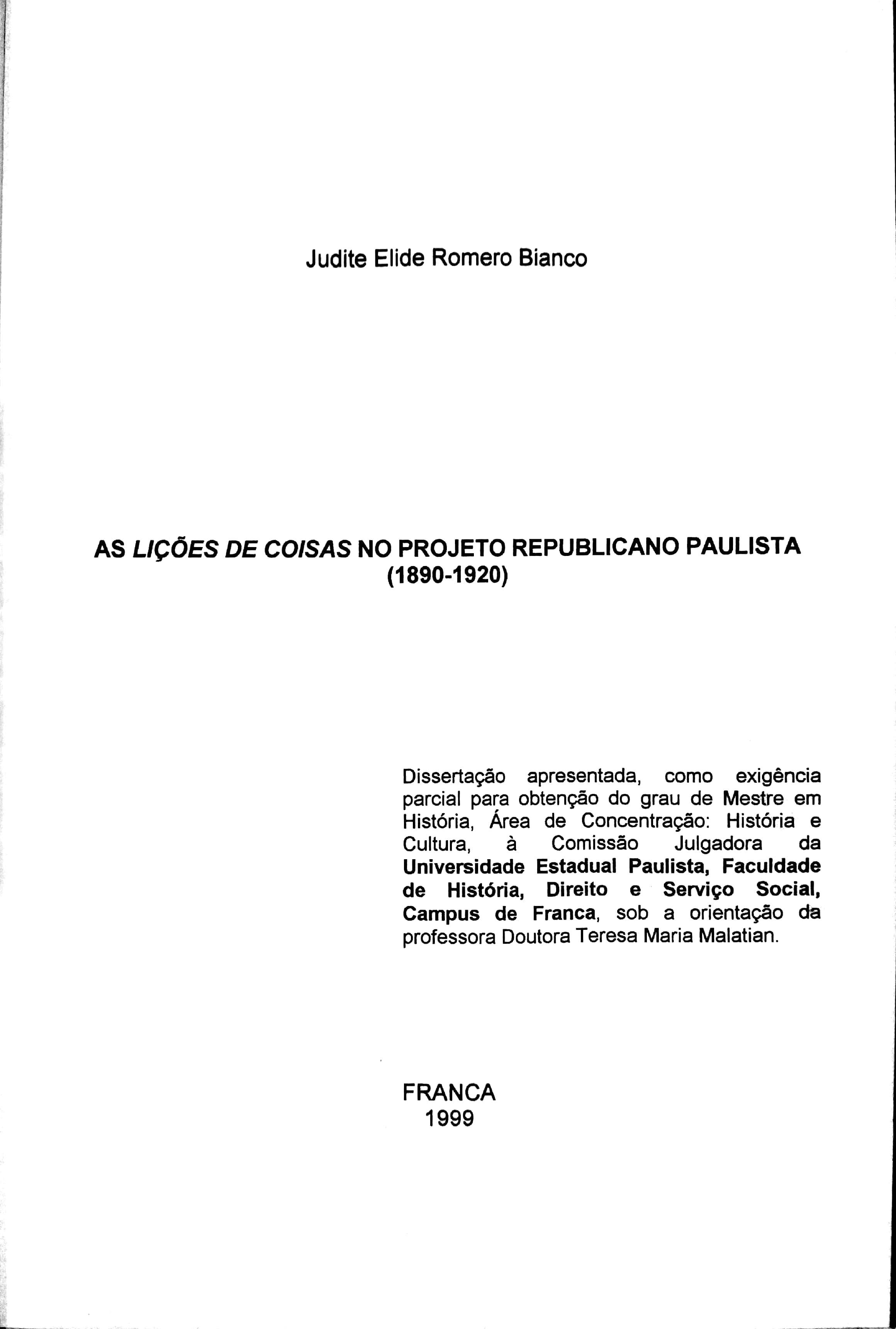 Judite Elite Romero Bianco (Orientador: Teresa Maria Malatian)