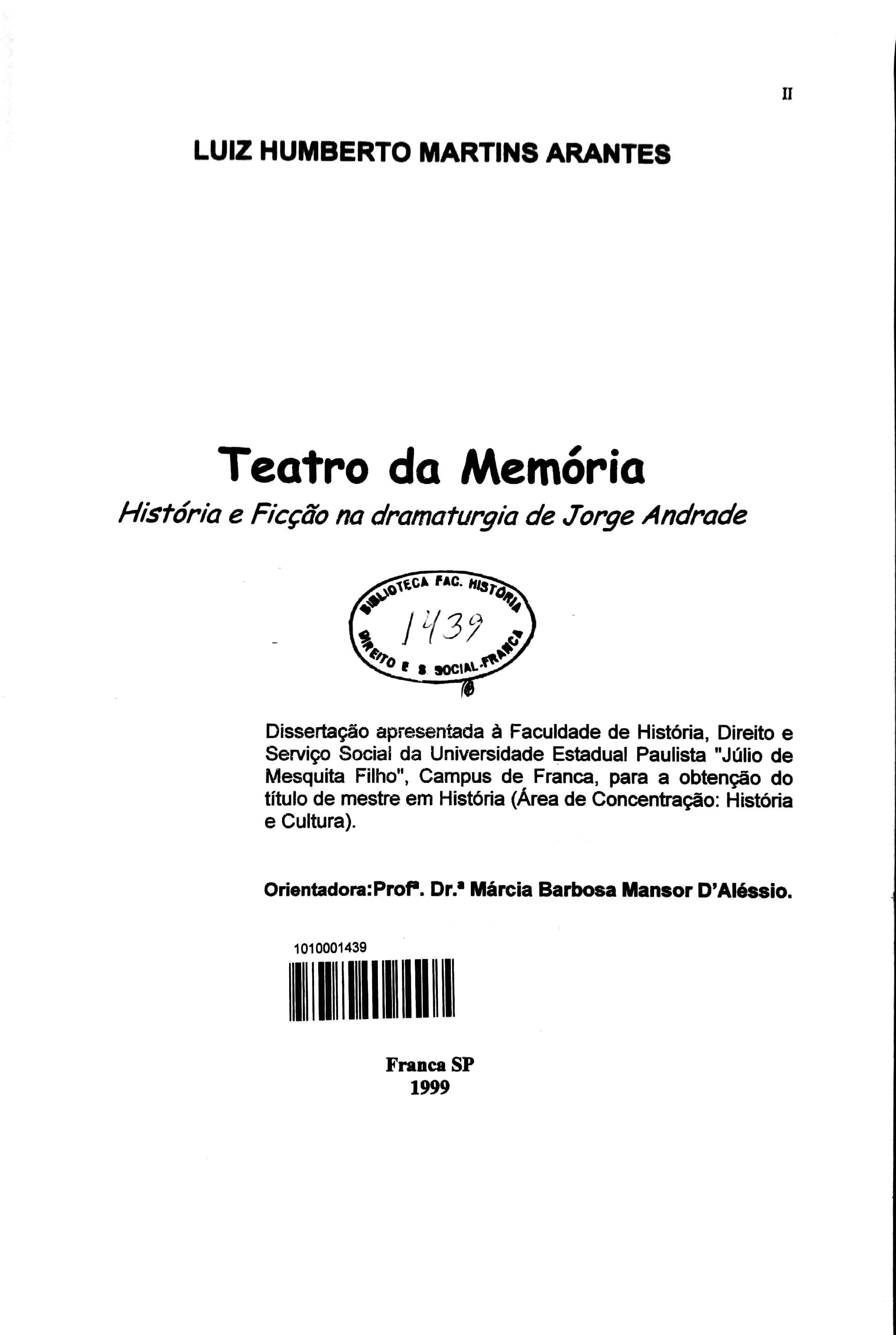 Teatro da Memória: História e Ficção na Dramaturgia de Jorge Andrade