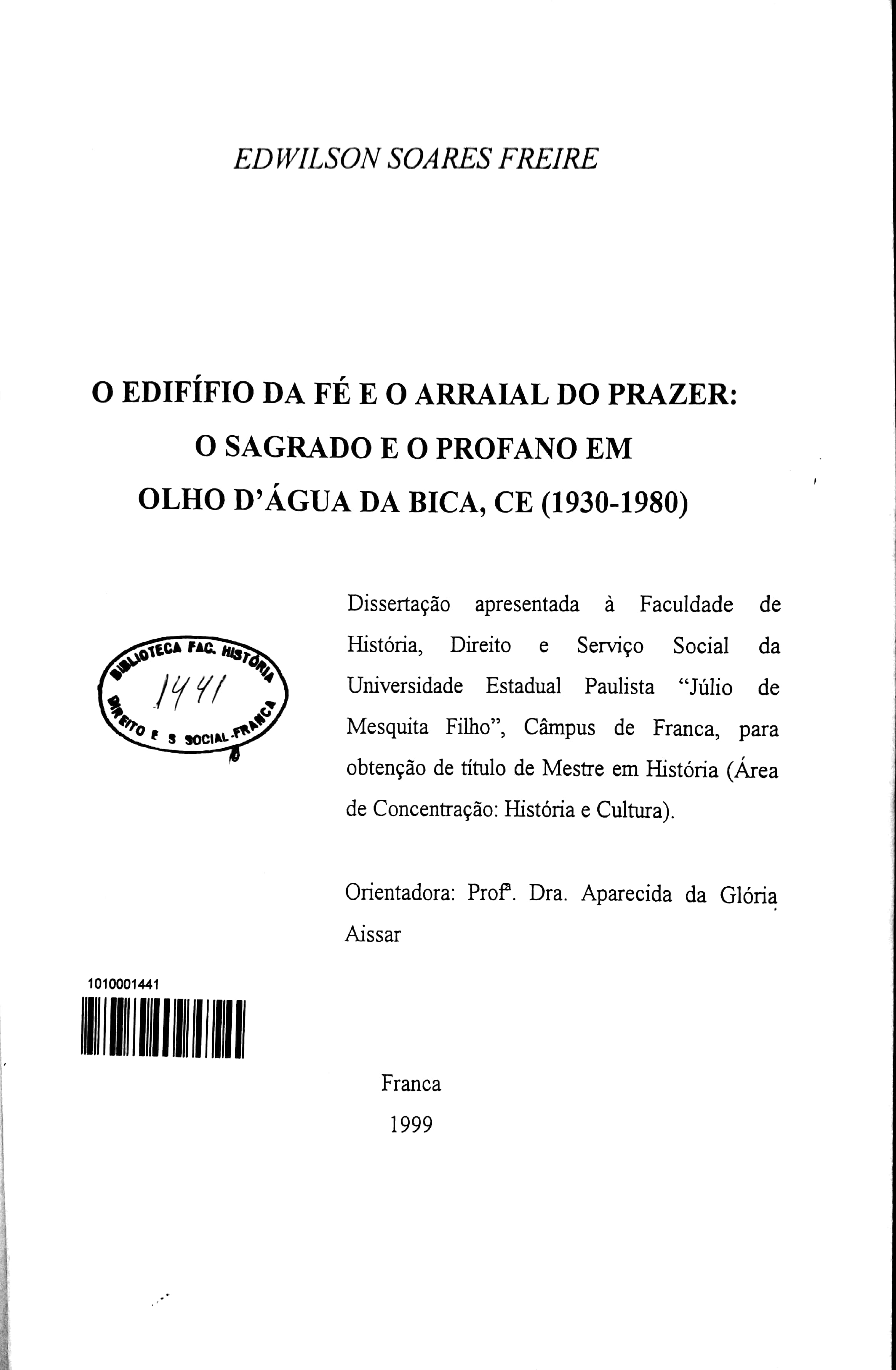 Edwilson Soares Freire (Orientador: Aparecida da Glória Aissar)