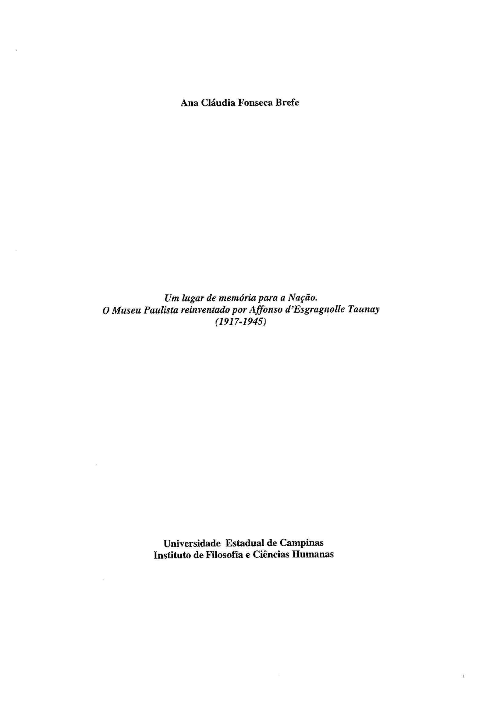 Um Lugar de Memória para a Nação. O Museu Paulista Reinventado por Affonso d'Escragnolle Taunay (1917-1945)