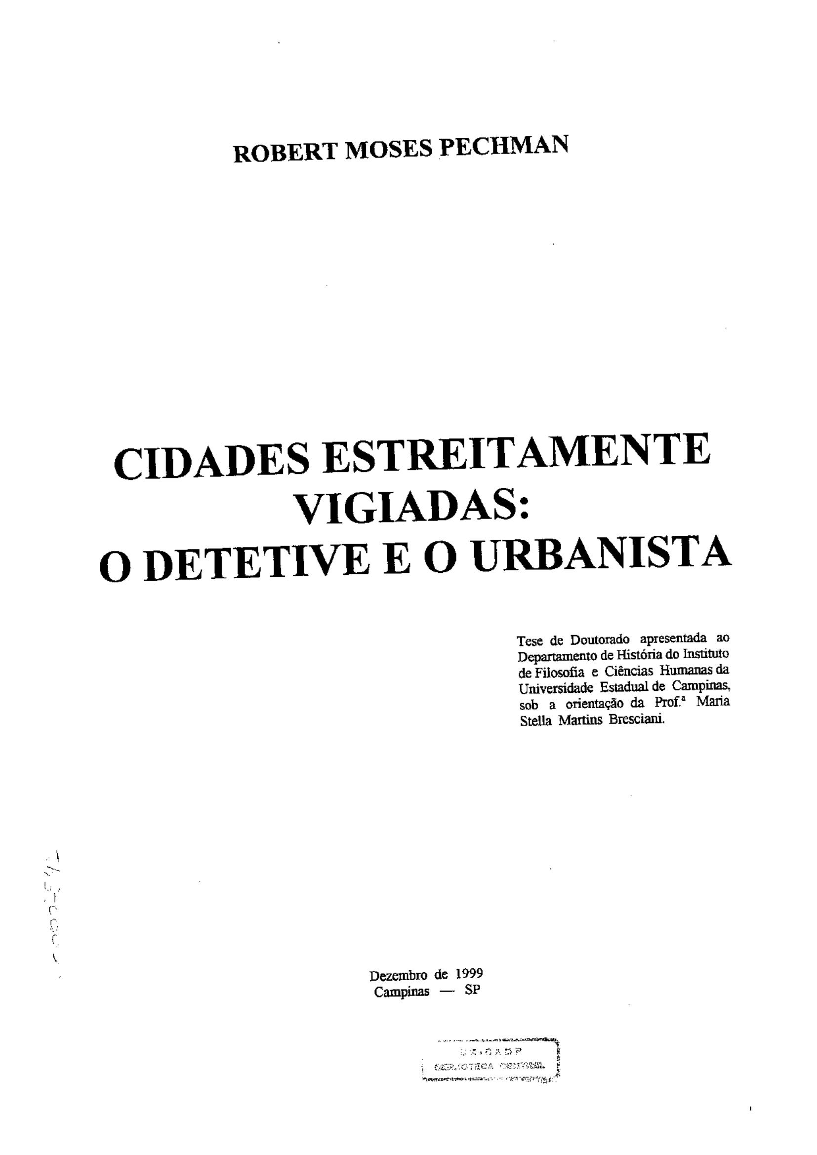 Cidades Estreitamente Vigiadas: O Detetive e o Urbanista