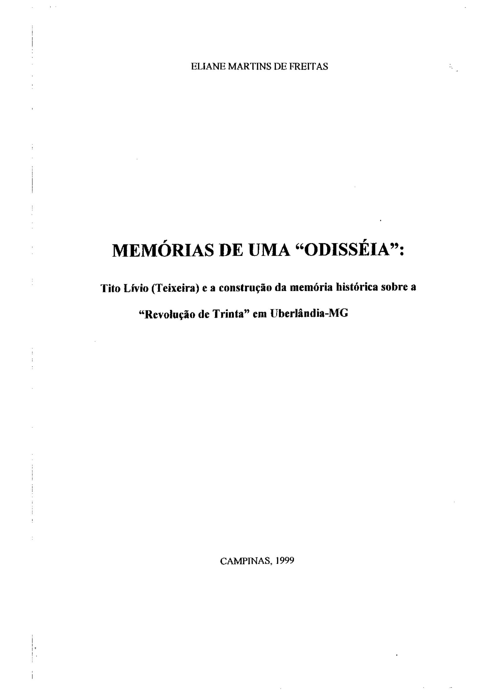 Memórias de uma "Odisséria": Tito Lívio (Teixeira) e a Construção da Memória Histórica sobre a "Revolução de Trinta" em Uberlândia-MG