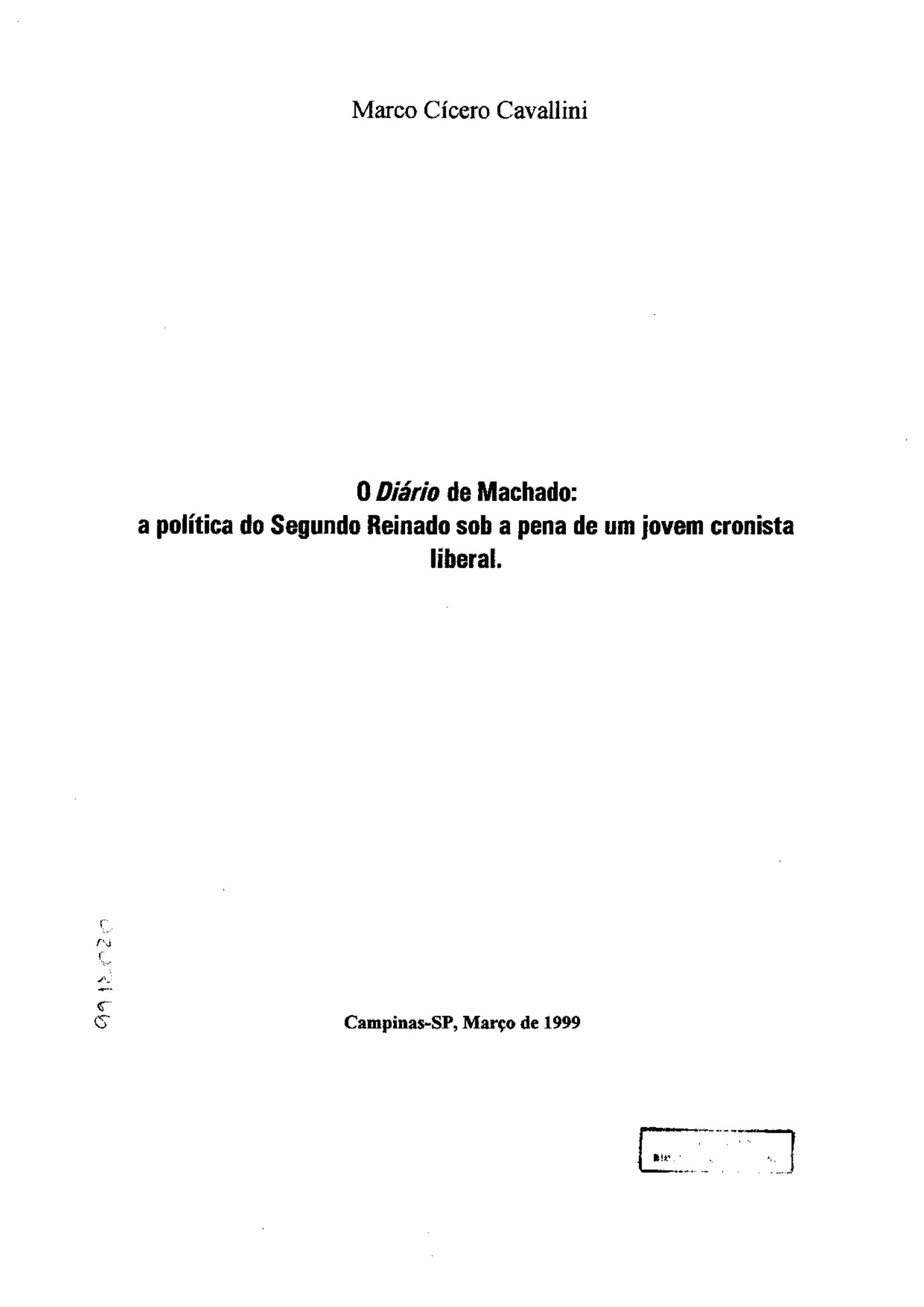 O Diário de Machado: A Política do Segundo Reinado sob a Pena de um Jovem Cronista Liberal