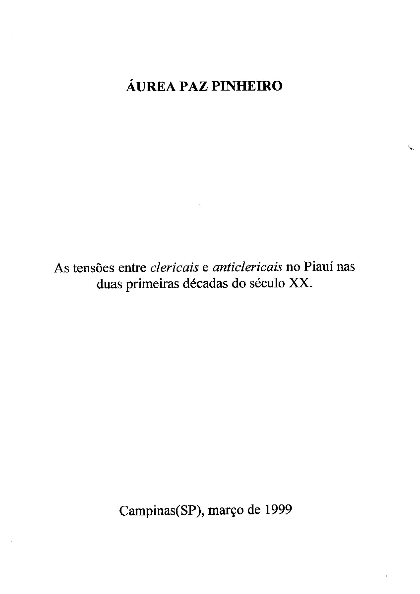 As Tensões entre Clericais e Anticlericais no Piauí nas Duas Primeiras Décadas do Século XX