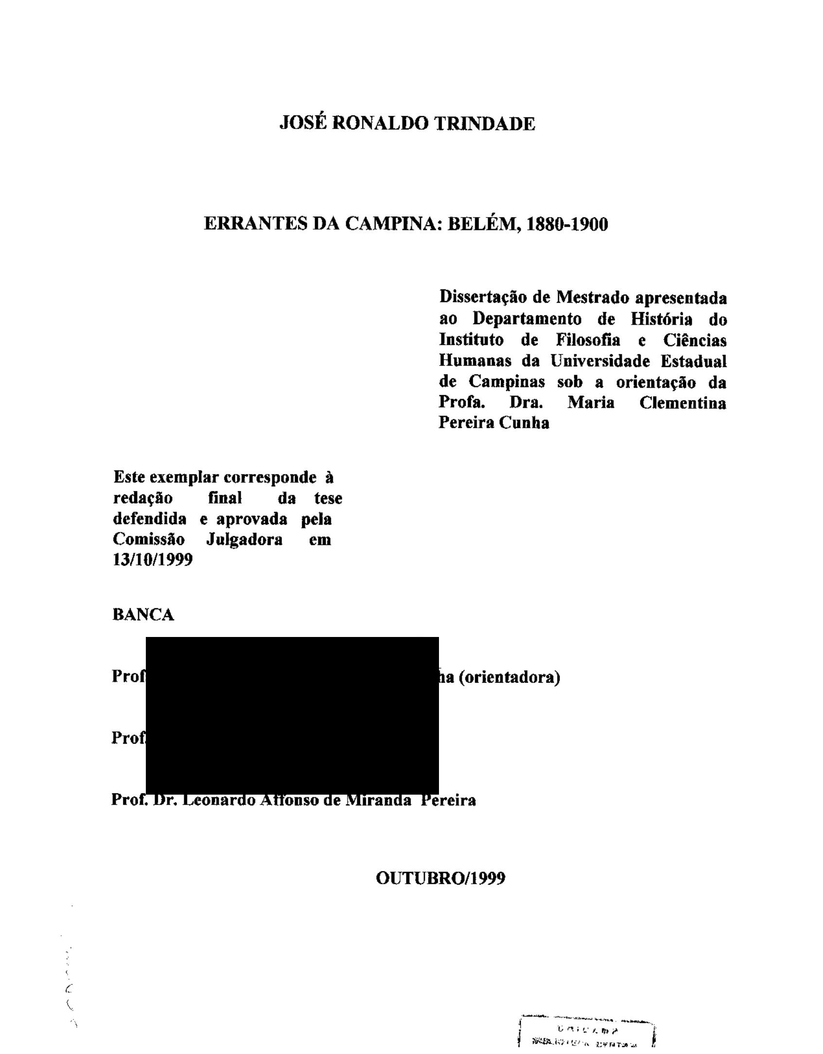 José Ronaldo Trindade (Orientador: Maria Clementina Pereira Cunha)