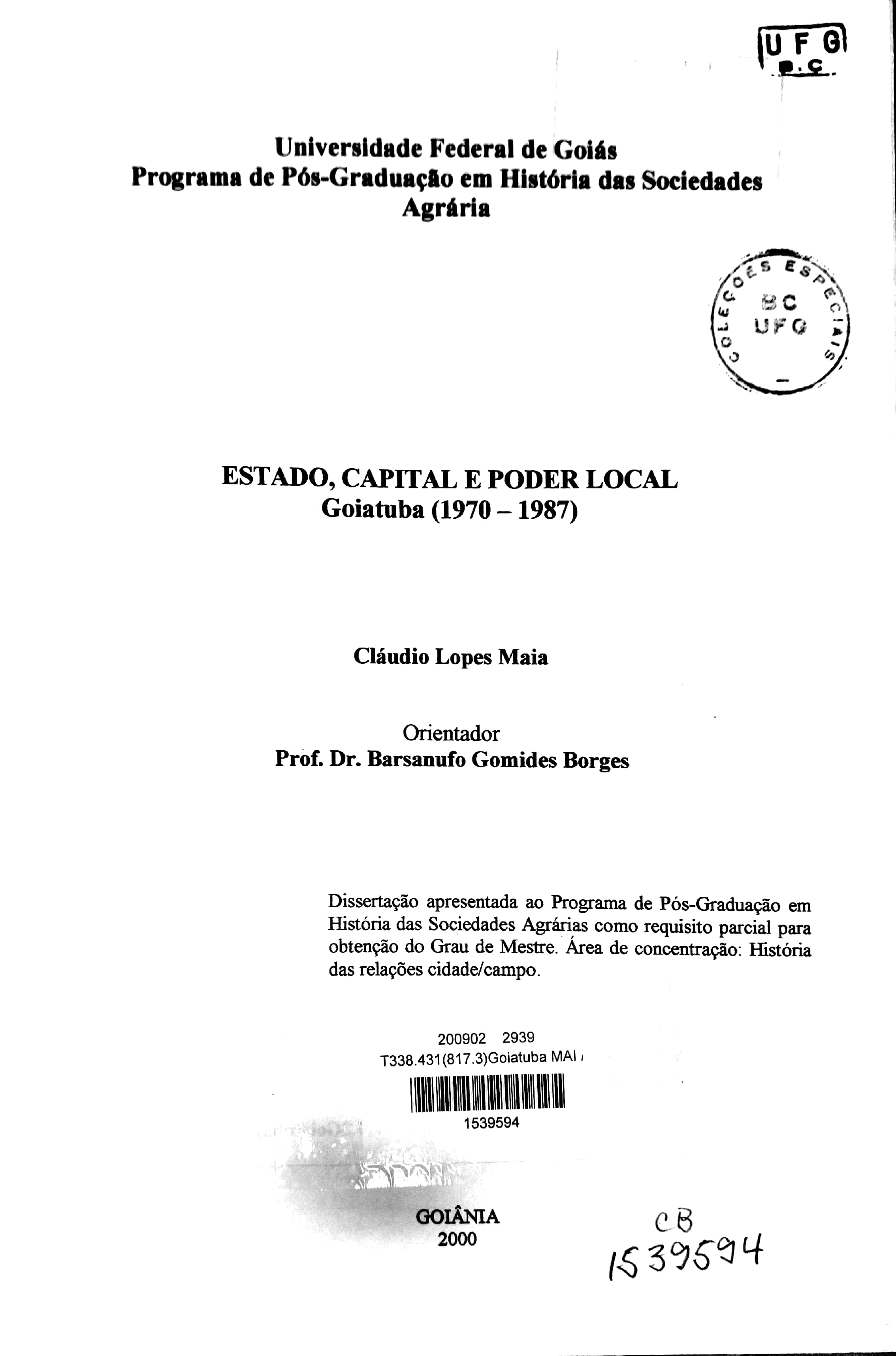 O presente trabalho discute as transformações vividas pela agricultura na década de 1970, procurando desvendar as relações entre o Estado, o grande capital e o poder local. Concentra sua reflexão na análise de estratégias de sobrevivência econômica e política operadas por grandes produtores, numa conjuntura de transformações políticas e econômica caracterizada pelo avanço do capital monopolista. Para realização da discussão, concentra-se a análise numa determinada localidade, Goiatuba, definida a partir da precisão do conceito de região. Com a definição do recorte espacial pretende-se enfocar a ação de grupos de poder local no contexto de mudanças apontado. O tratamento do tema foi realizado através do estudo da estruturação de uma cooperativa agrícola, tida como espaço privilegiado de observação, pois em seu interior encontram-se em ação os diversos agentes que compõem o universo de discussão aqui pretendido. Pelos resultados apresentados conclui-se que as transformações por que passou a agricultura na década de 70, apesar de representar a consolidação do capital monopolista no campo, não significaram o desaparecimento dos grupos “tradicionais” de poder. Esses grupos como parte do bloco no poder, tiveram seus espaços de negociações conservados pela manutenção da iniciativa política e econômica frente ao grande capital, iniciativa esta garantida no interior da própria conjuntura de transformações, através da manipulação do poder político concentrado no plano local, indispensável para a consolidação da hegemonia burguesa. |